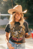 The Born Free Cropped Tee is sure to be another favorite in your closet. Made with a washed, soft 100% mineral washed cotton fabric and oversized fit, you'll feel comfortable while the classic American graphic is equal parts cute and edgy. Slight distressing. Made in the USA by Country Deep.