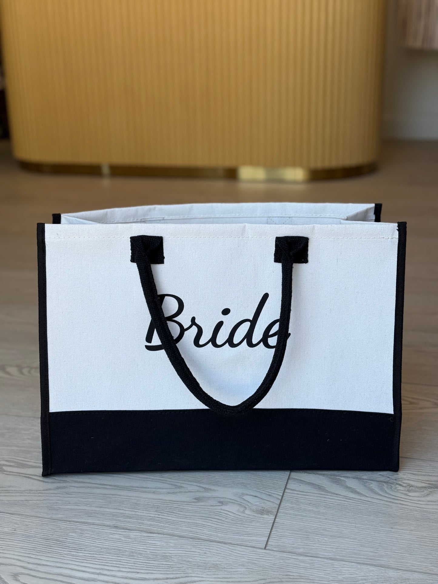 Ready for your big day and beyond? Our new bride tote bag is roomy enough to hold all your wedding day essentials and more! It features sturdy handles perfect for carrying everything you need while celebrating, from bridal showers to honeymoon adventures!