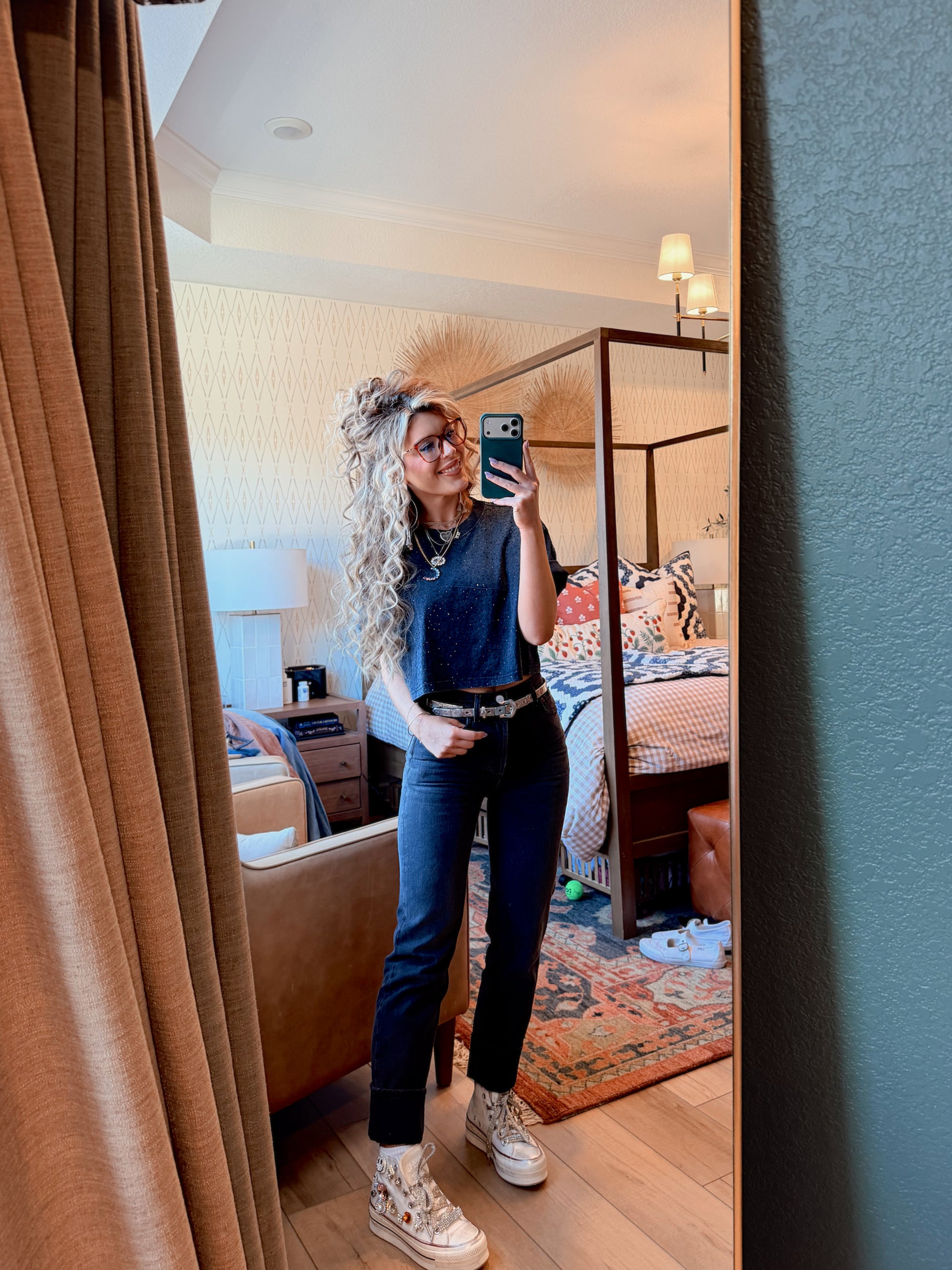 Talk about a tee that screams GB!! Our new "Brooklyn" Acid Wash Tee will become our go-to this year! Made from soft cotton, this tee has fabulous hotfix rhinestone embellishments all throughout! With its oversized crop fit, this tee is so cute styled with denim or layered!