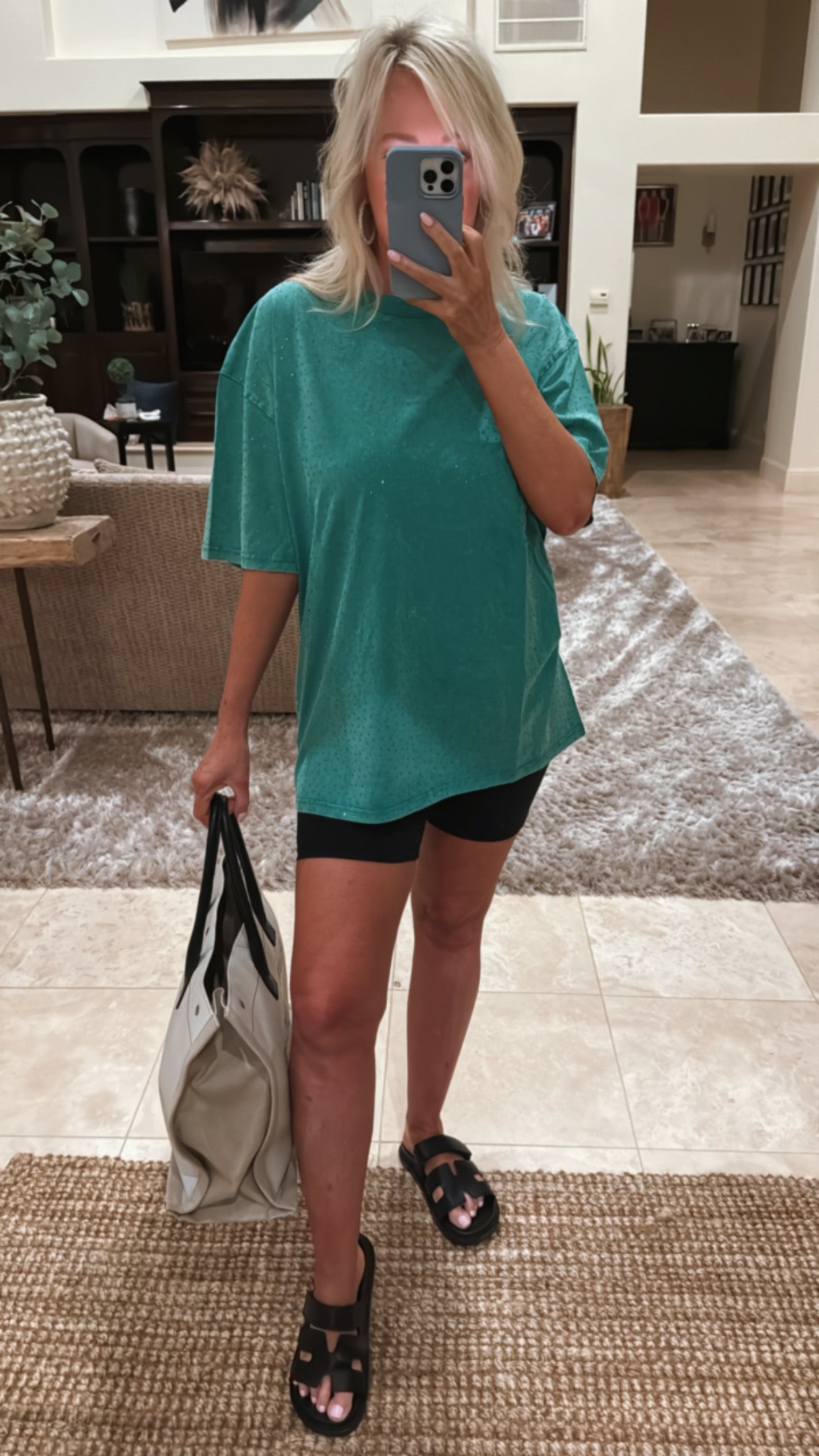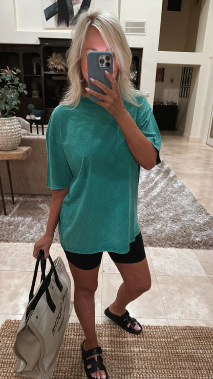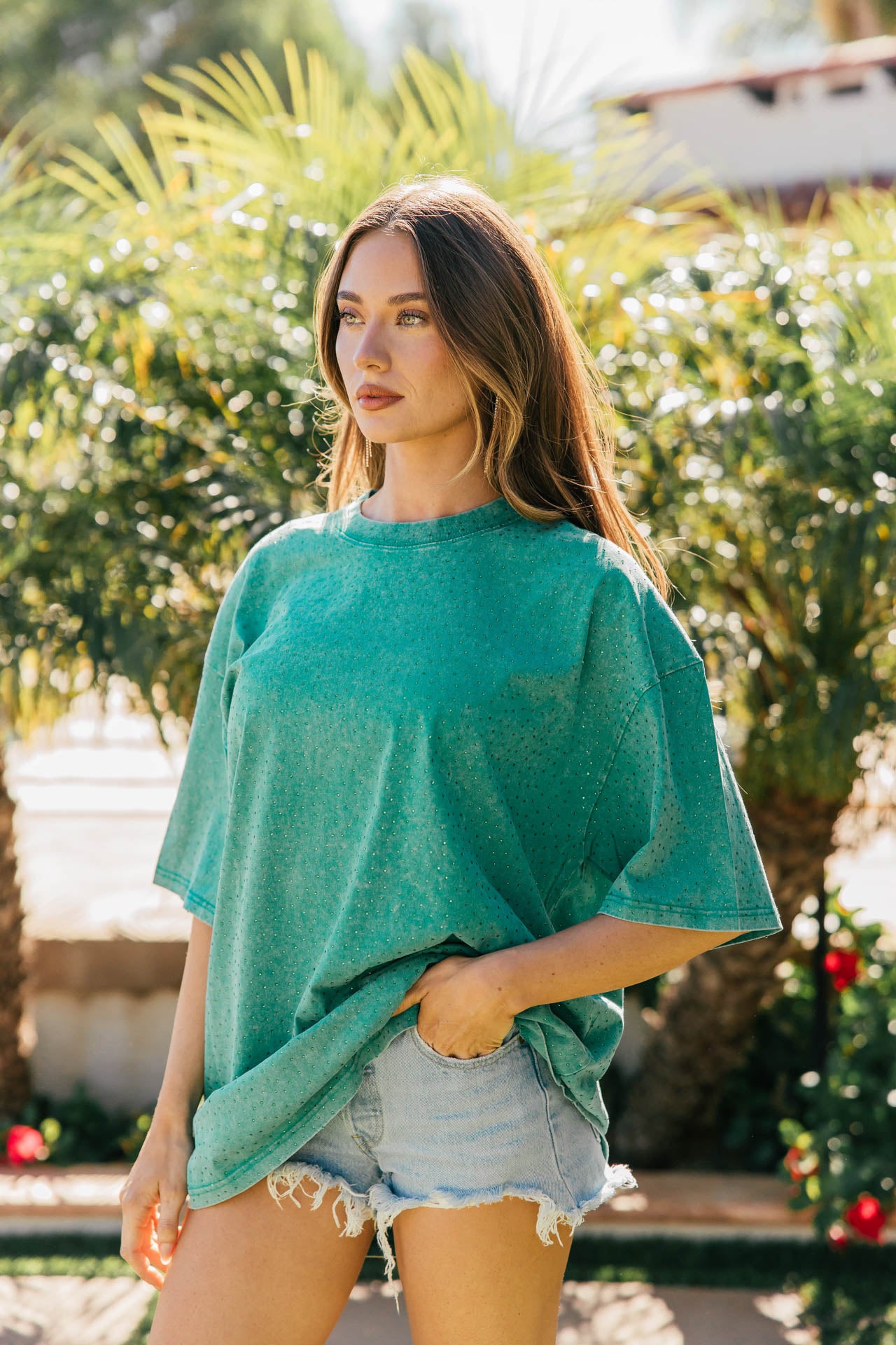 NEW!! "Brooklyn" Acid Wash Rhinestone Tee in Teal