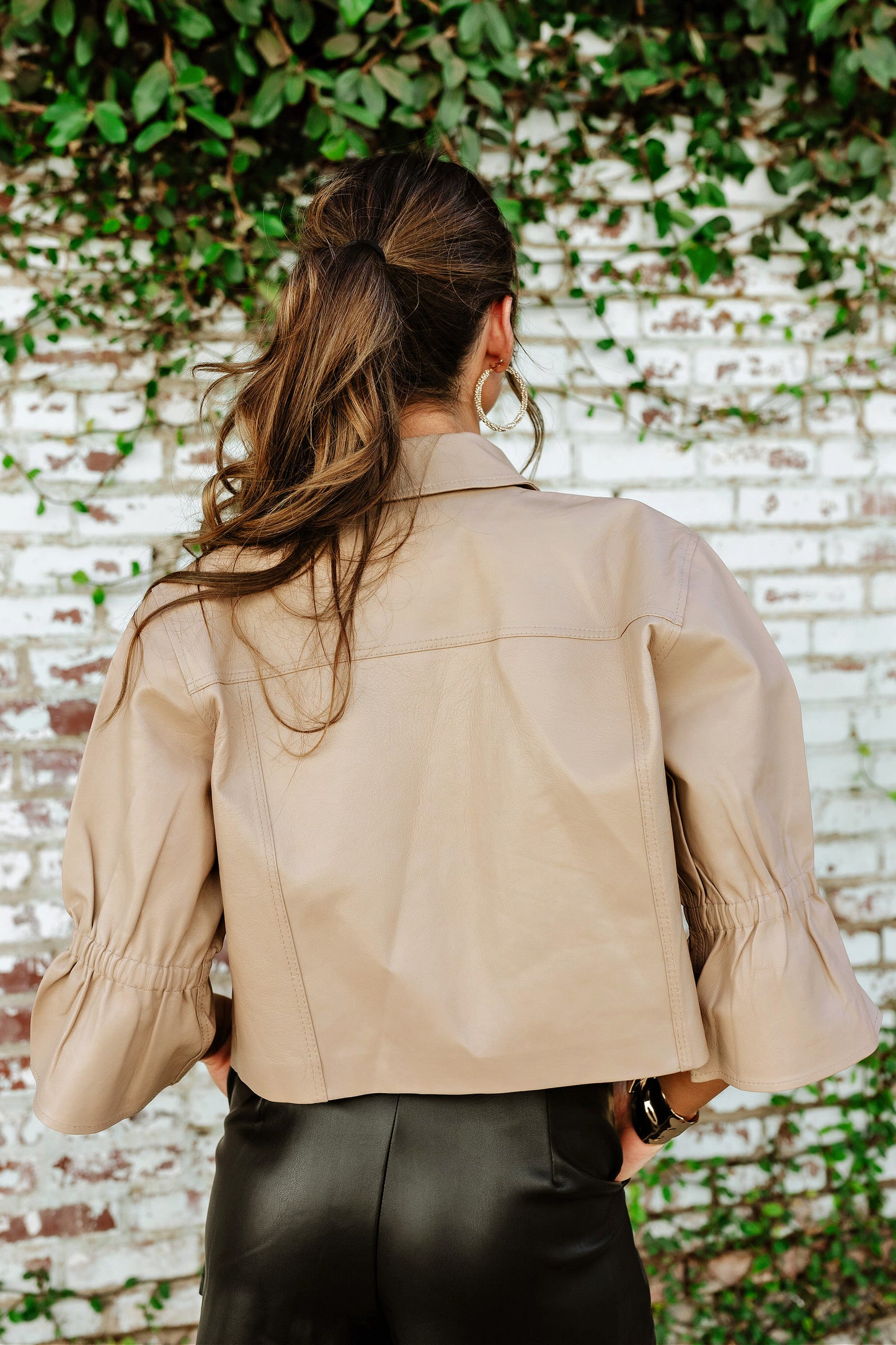 NEW!! Carolina Leather Ruffle Sleeve Jacket in Taupe by LaMarque