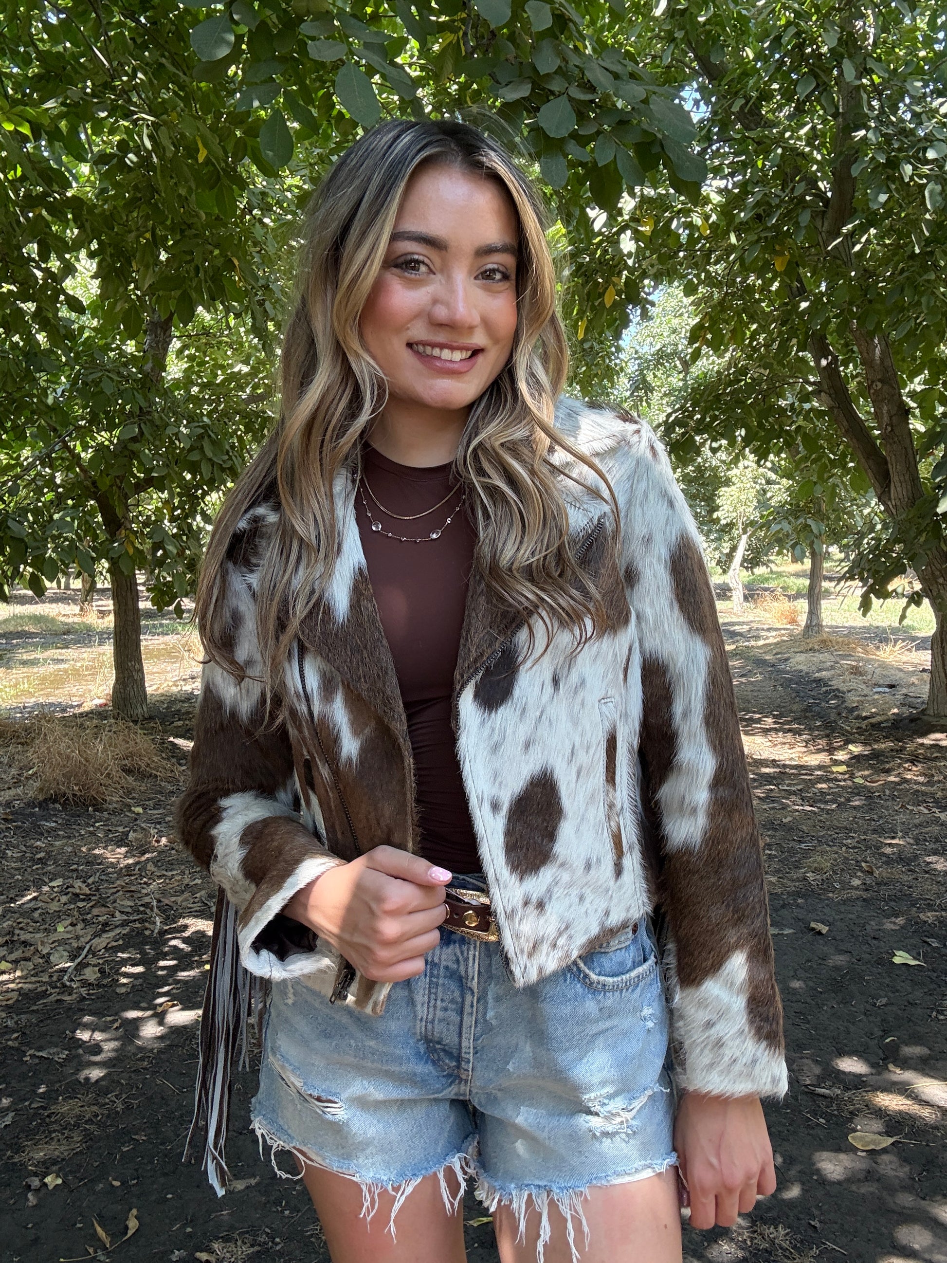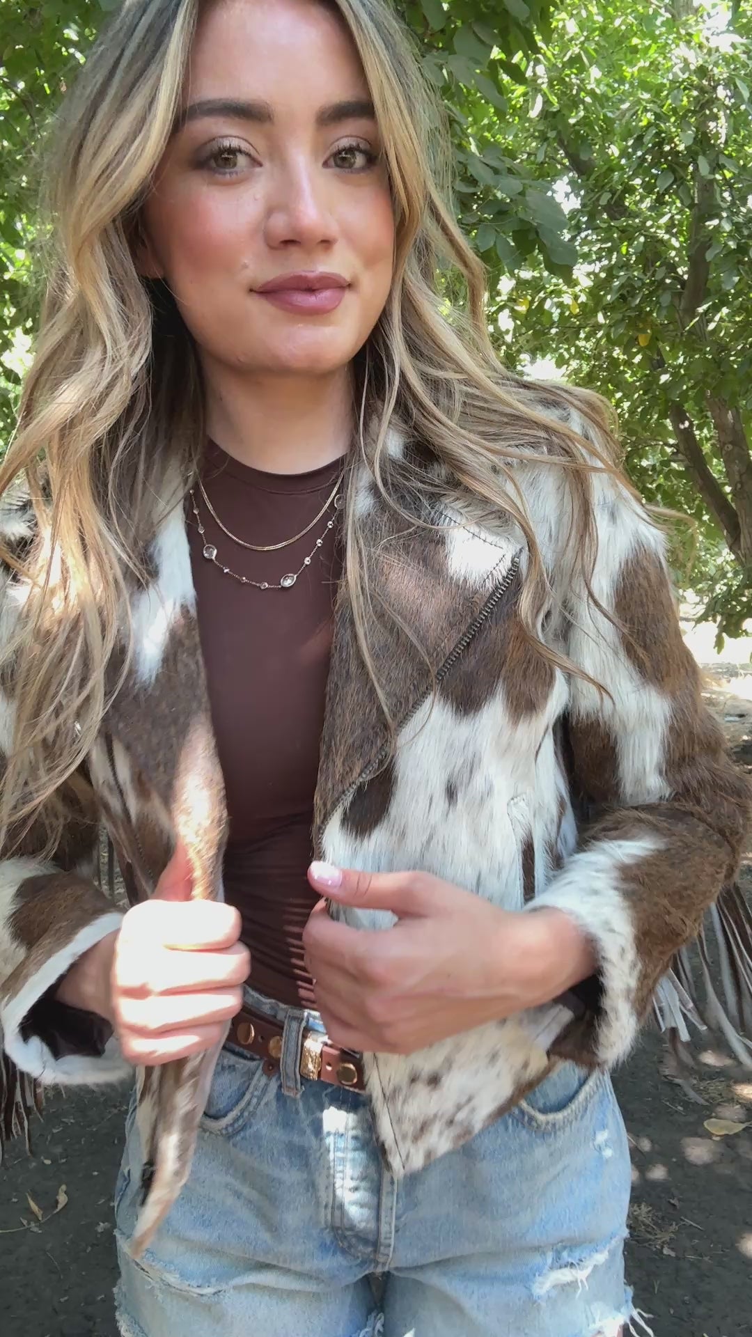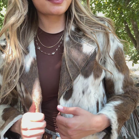 We’re thrilled to bring you the statement piece of the year! Americana, elevated. Our Limited Edition Cowhide Jacket with Fringe is a statement piece that combines edgy style with timeless appeal. Made by hand from genuine cowhide. THE JACKET THAT OUTLIVES TRENDS!