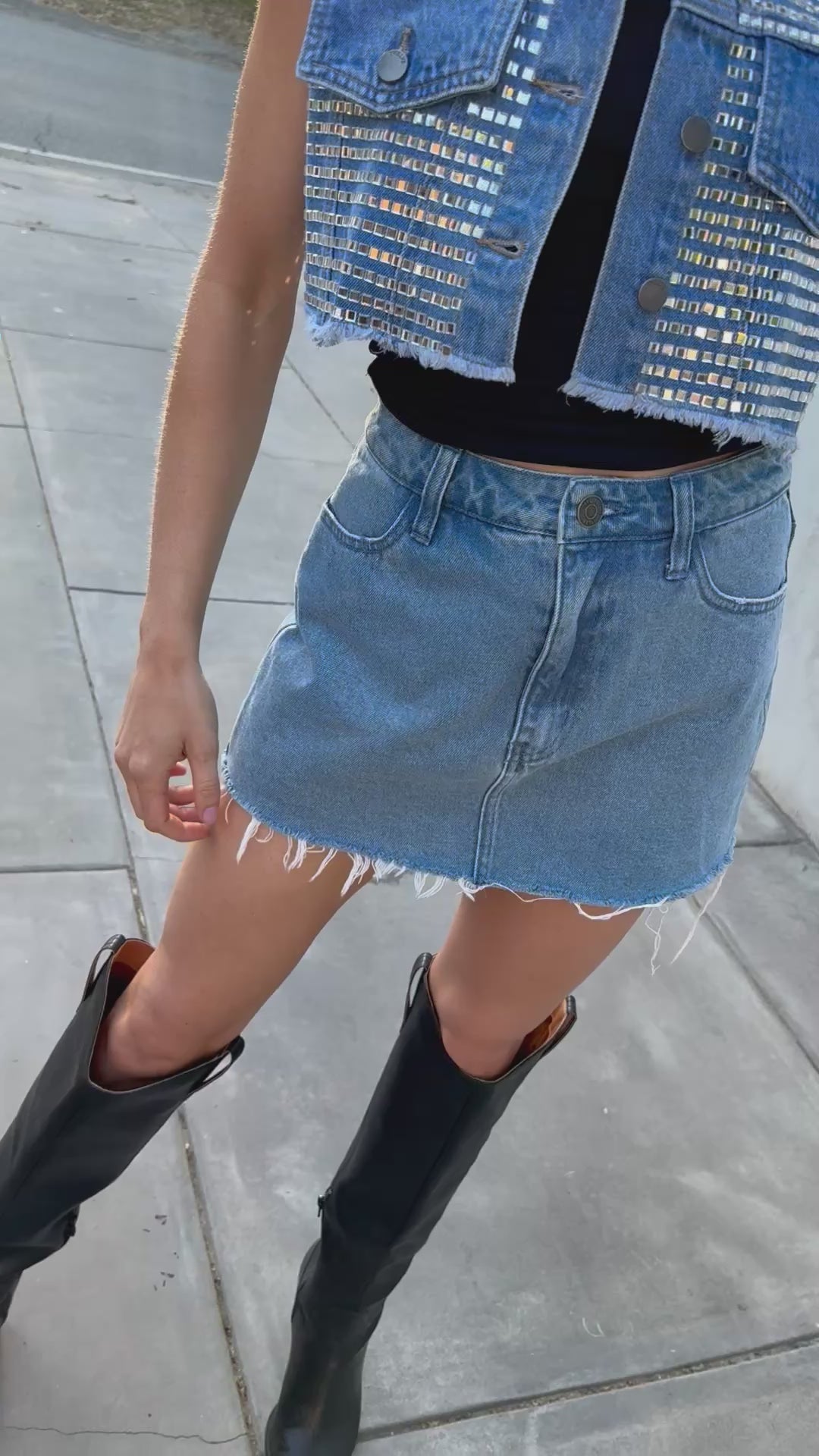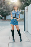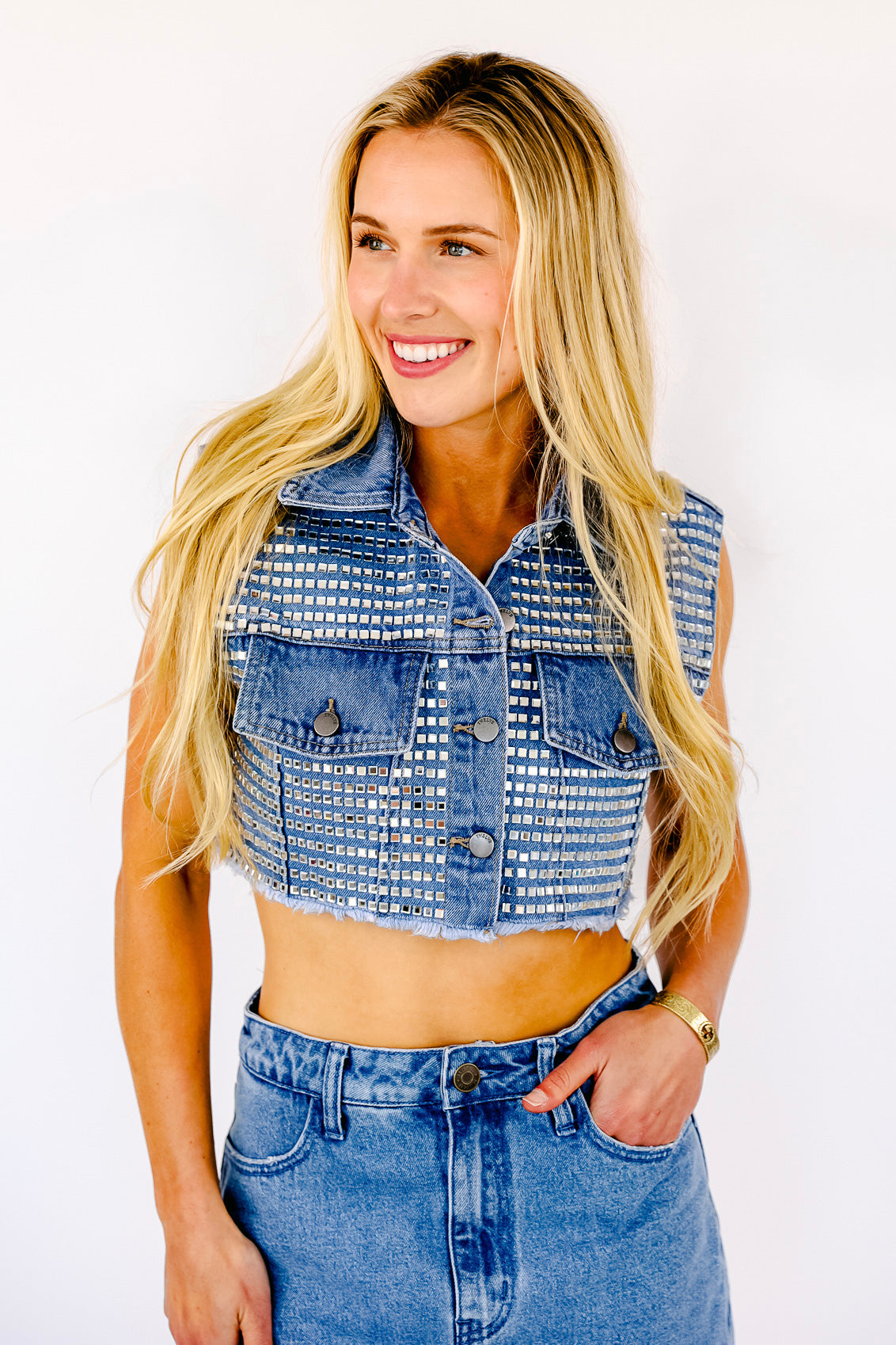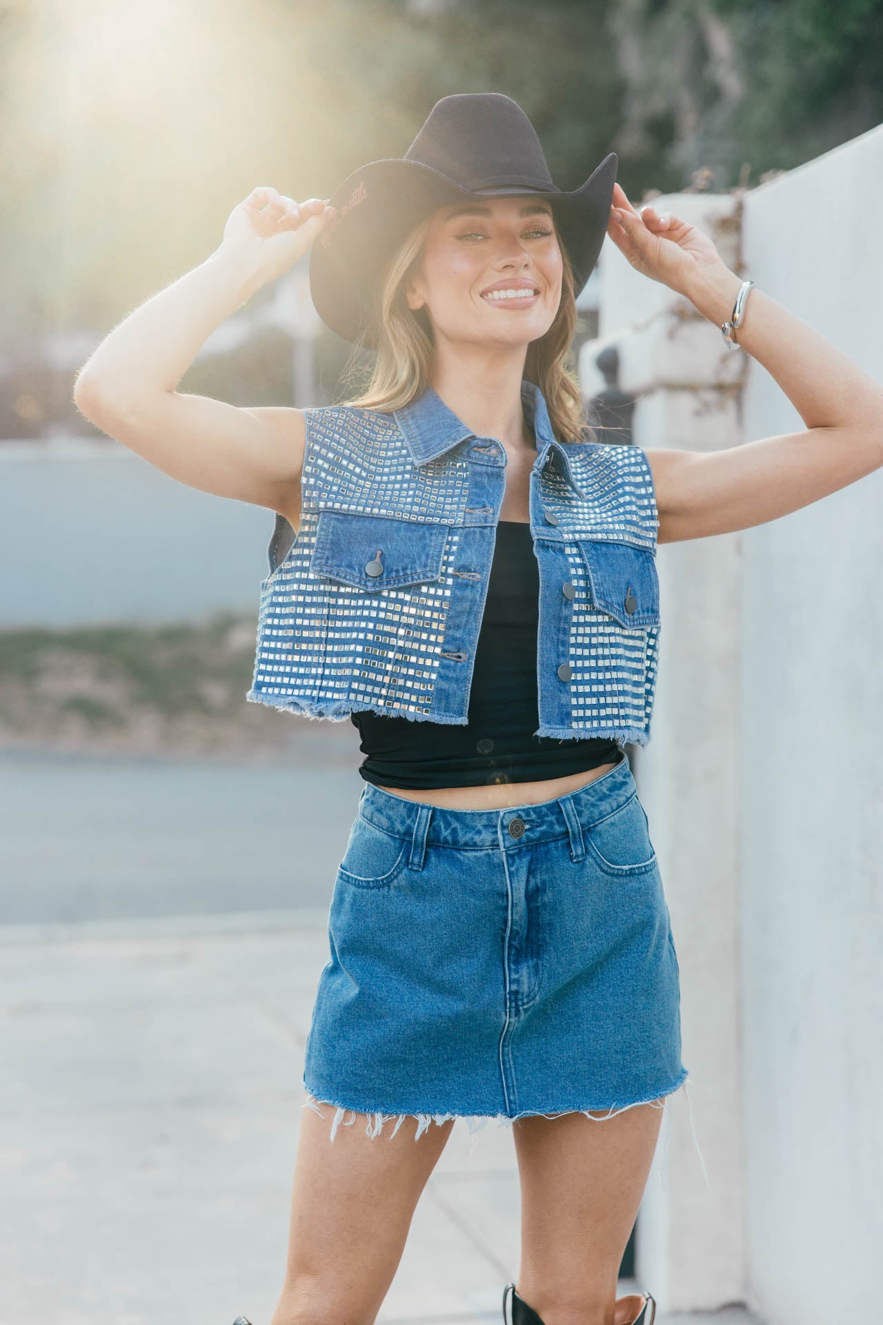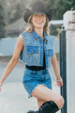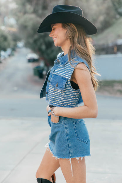 BEST SELLER!! Cropped Rhinestone Denim Vest