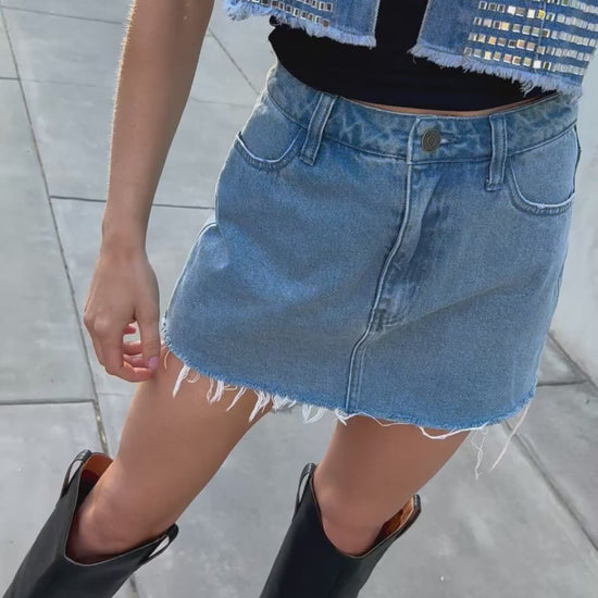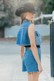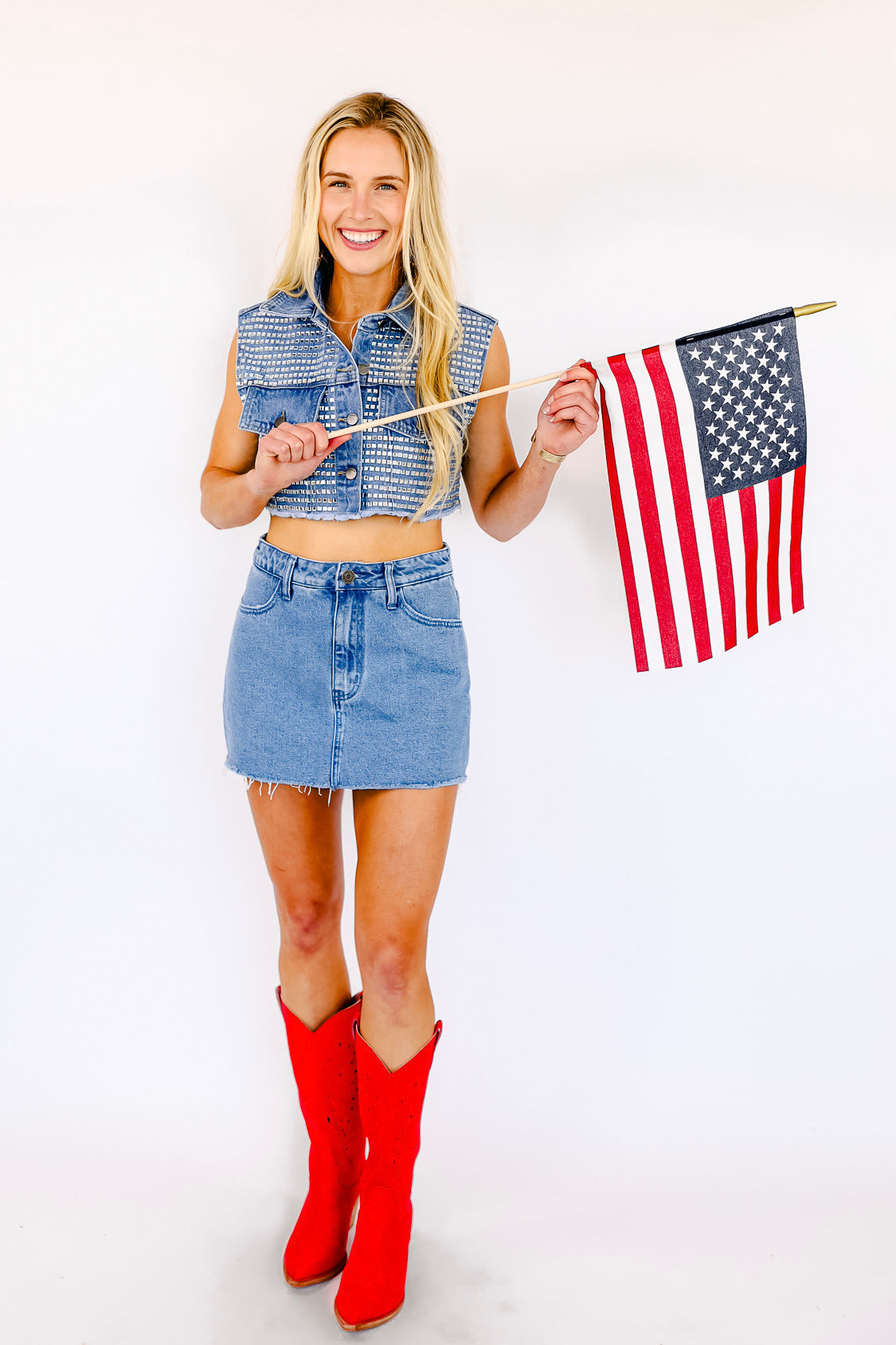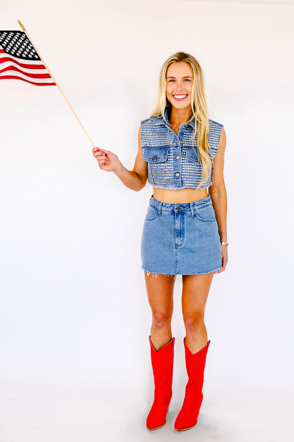 BEST SELLER!! Cropped Rhinestone Denim Vest