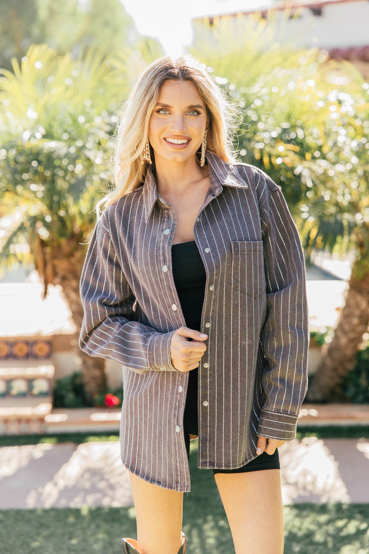 BEST SELLER!! Crystal Striped Denim Shacket Black