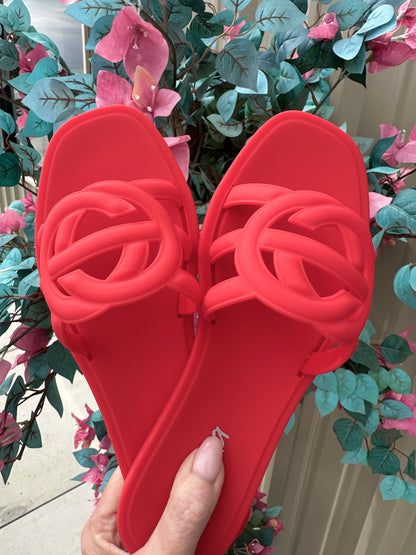 Whether you're exploring the city or relaxing by the pool, the Icon Jelly Sandal brings relaxed elegance to every step. Crafted from a pvc jelly material, and an interlocking design, these sandals add a touch of luxury to your laid-back look.
