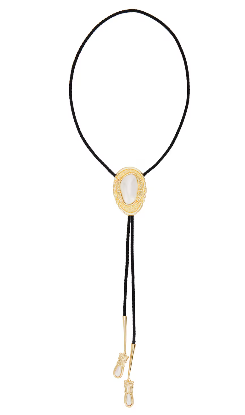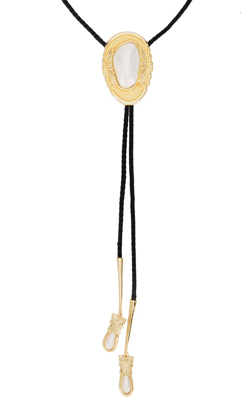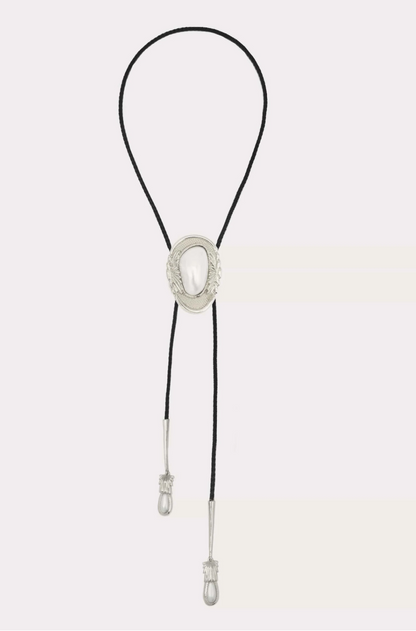 A modern take on a Western classic, this bolo tie necklace blends vintage charm with contemporary elegance. Featuring an intricately designed metal pendant and adjustable rope detailing, it's the perfect statement piece to add a bold, Western-inspired touch to any outfit. Adjustable