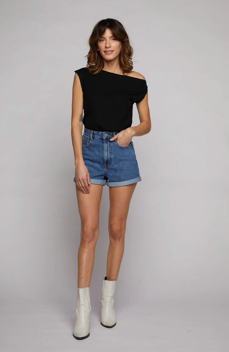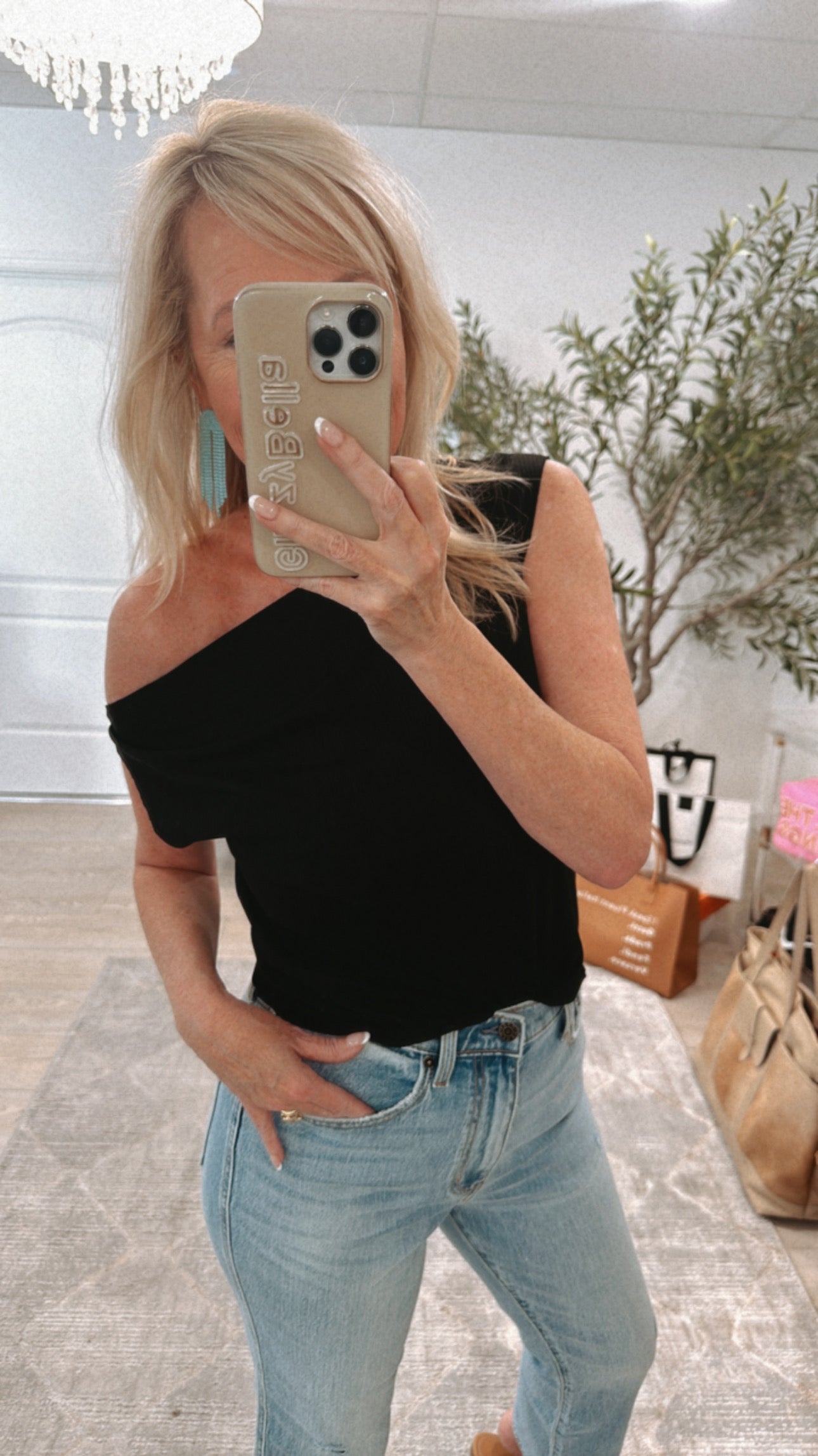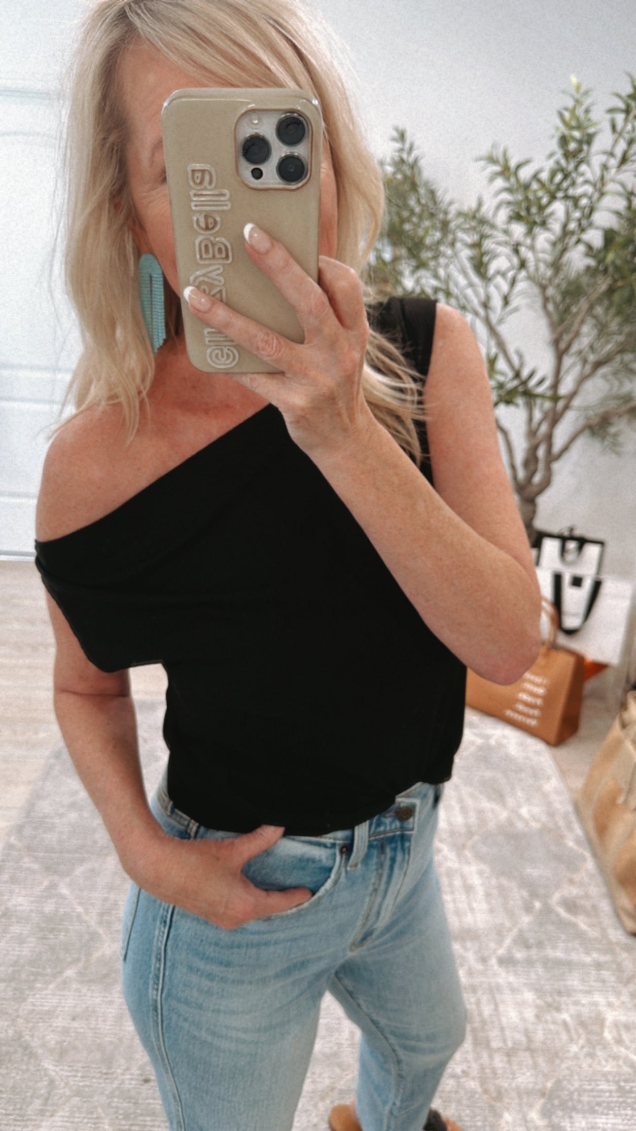 Drop shoulder top with rib fabric is so flirty and fun! Style it with high waisted jeans or shorts. Dress is down with sneakers or dress up with heels. This is a piece everyone needs in their closet! Shelly is wearing a medium for reference.