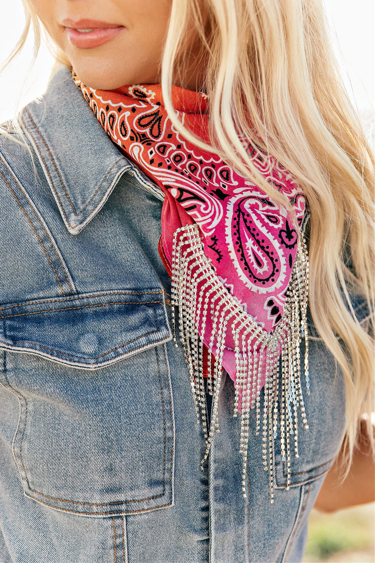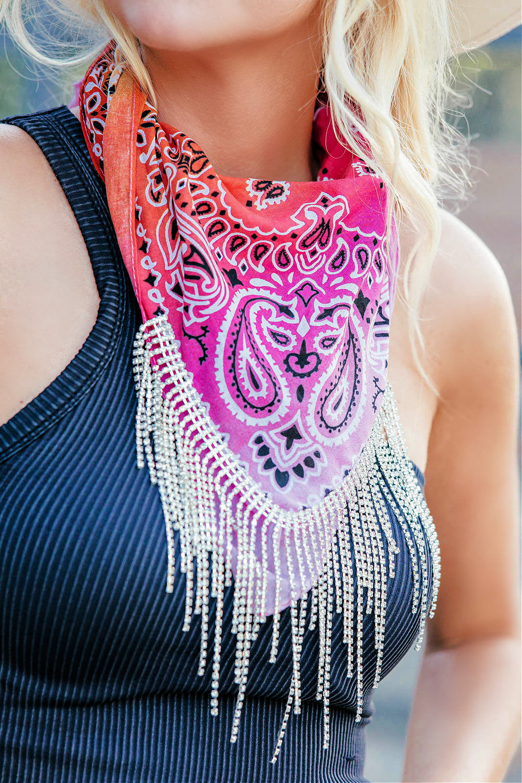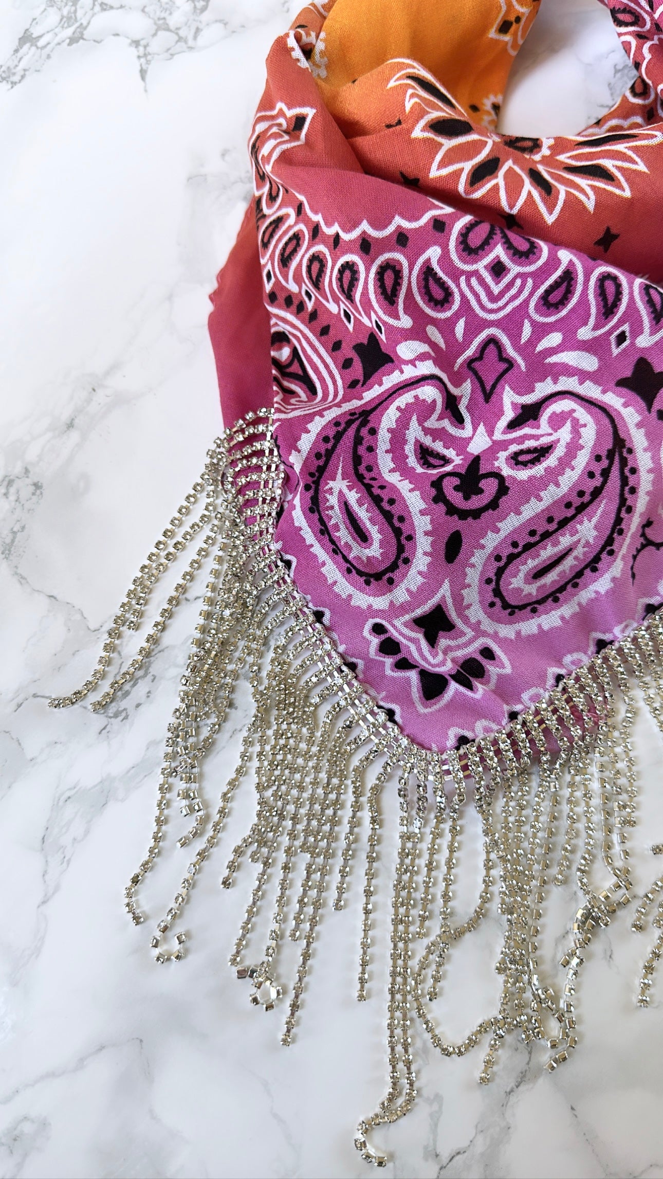 AS SEEN ON KRISTA HORTON!! Crystal Fringe Bandana in Pink Ombre