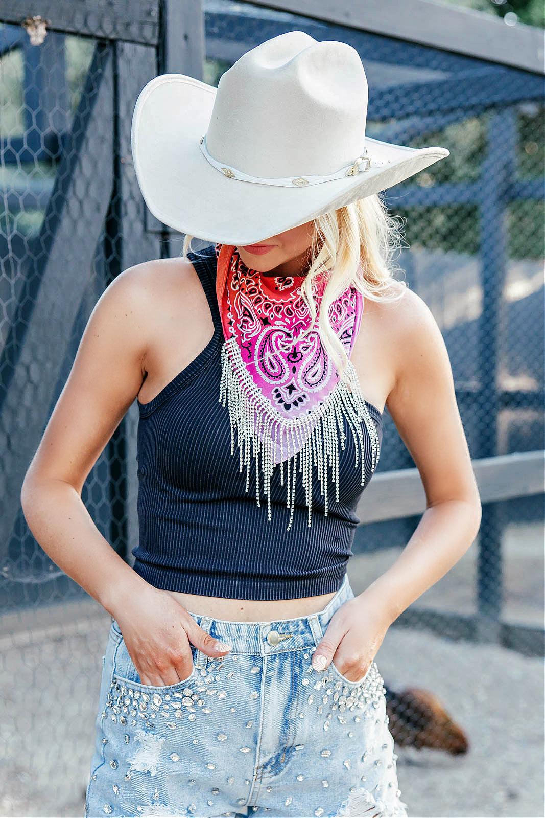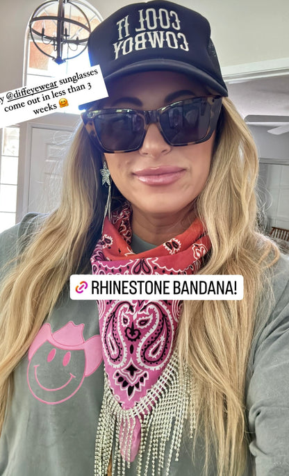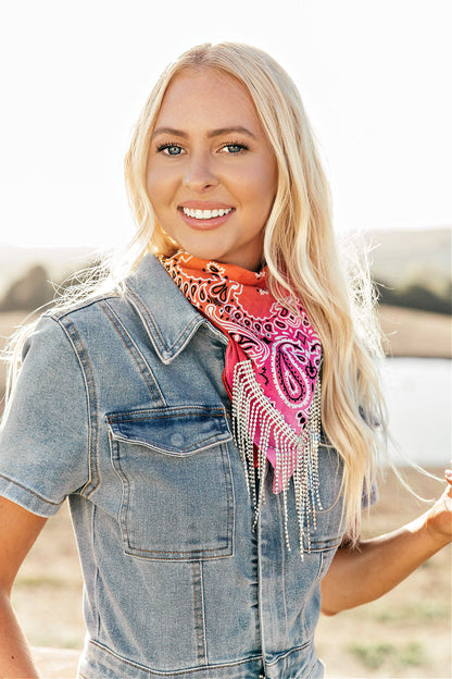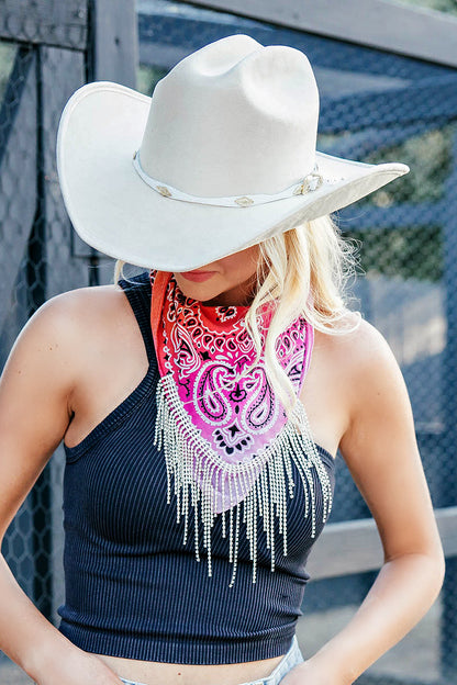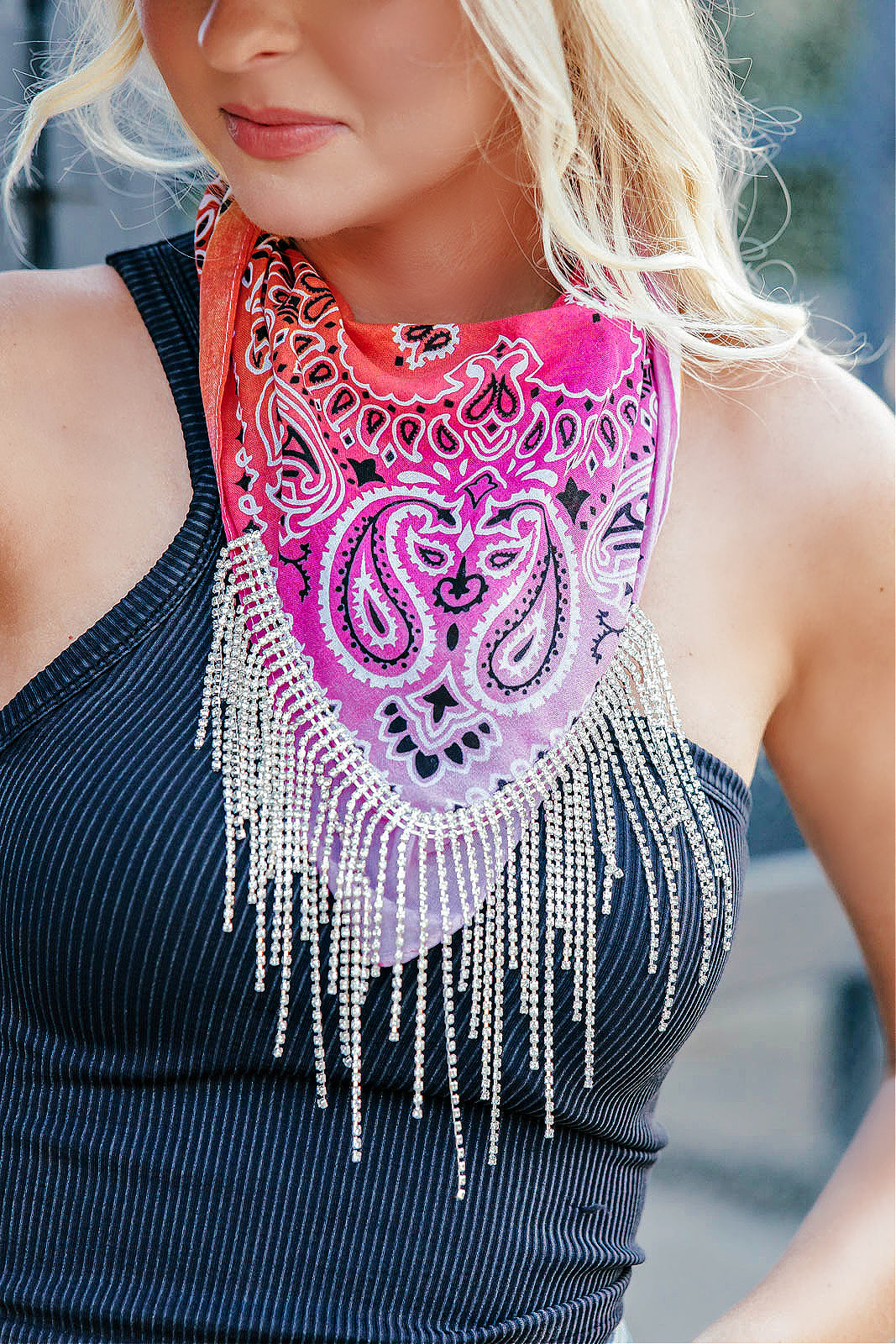 AS SEEN ON KRISTA HORTON!! Crystal Fringe Bandana in Pink Ombre