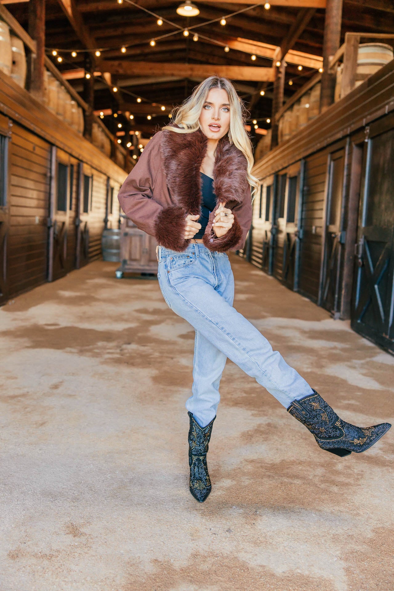 Ladies, it doesnt get more fabulous than this!! Exude effortless style and luxurious comfort with the Harley Fur Trim Denim Jacket. Expertly crafted with a chocolate wash for a timeless look, this relaxed fit jacket features a fabulous faux fur neckline and cuffs for an elevated touch. Perfect for making a statement on a chilly day, this cozy and warm piece is a trendy must-have for fall/winter!