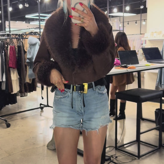 NEW!! Harley Fur Trim Denim Jacket in Brown