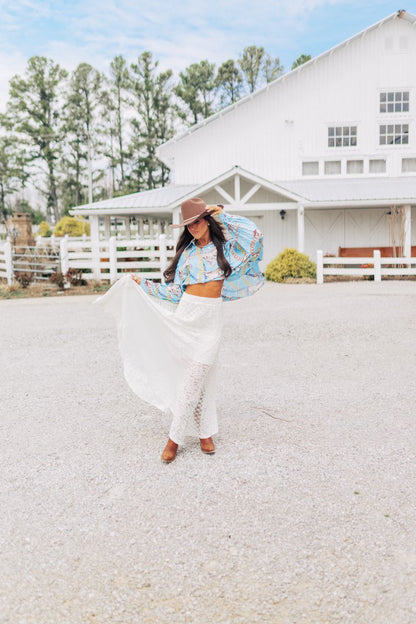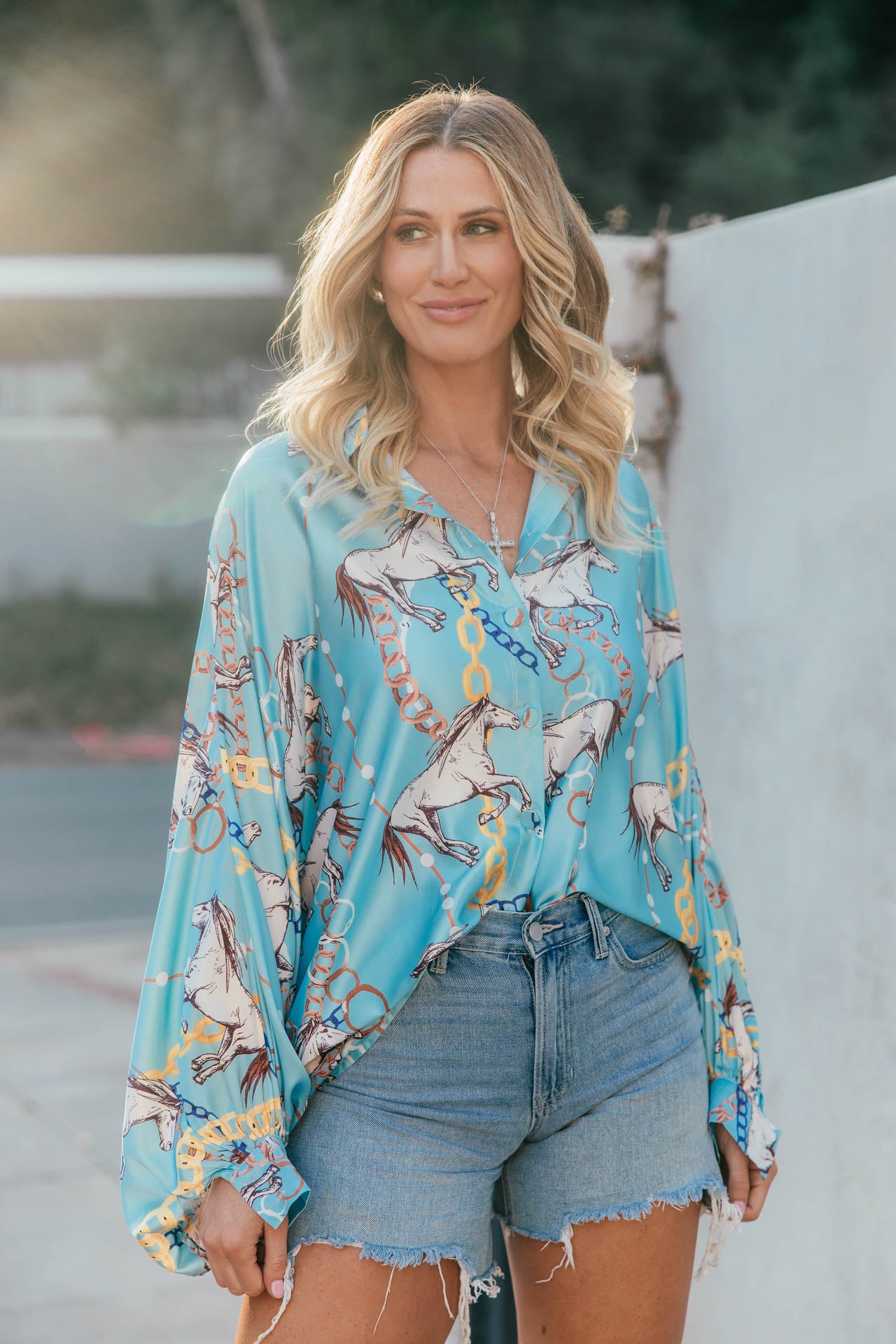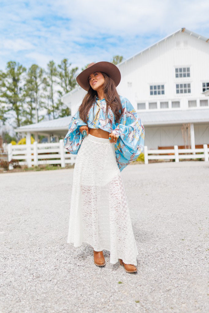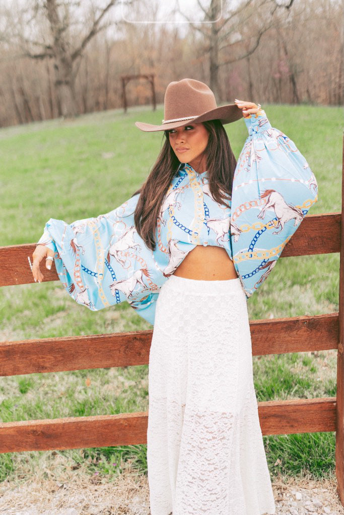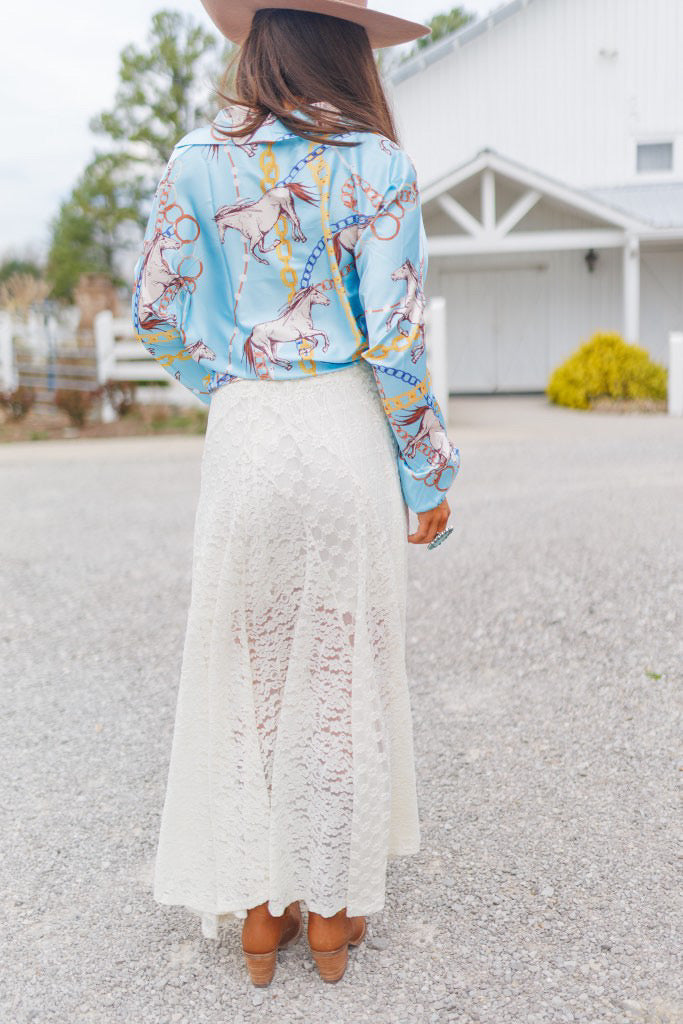 BEST SELLER!! Horseprint Satin Top in Blue