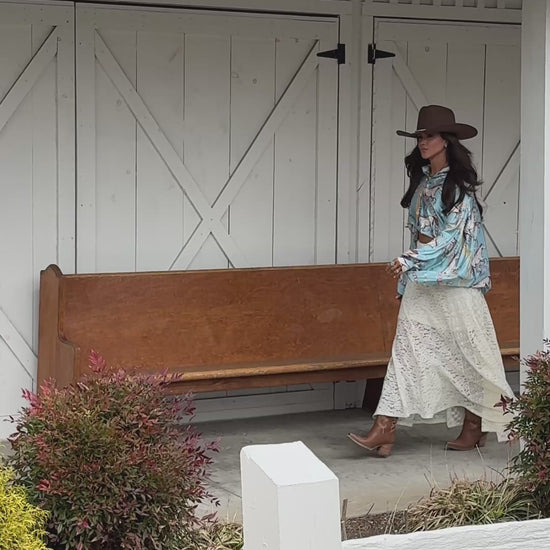 Calling all cowgirls! This chic satin top will become a new staple in your closet! Style with leather shorts, high waisted trousers, or a pair of flare denim and you're set! Featuring a satin fabrication, button up front, and balloon sleeves - prepare for endless compliments! One size fits all, very oversized.