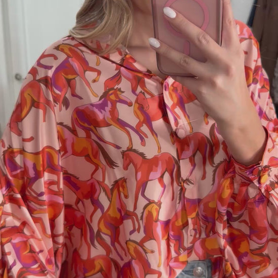 NEW!! Horseprint Satin Top in Orange & Pink