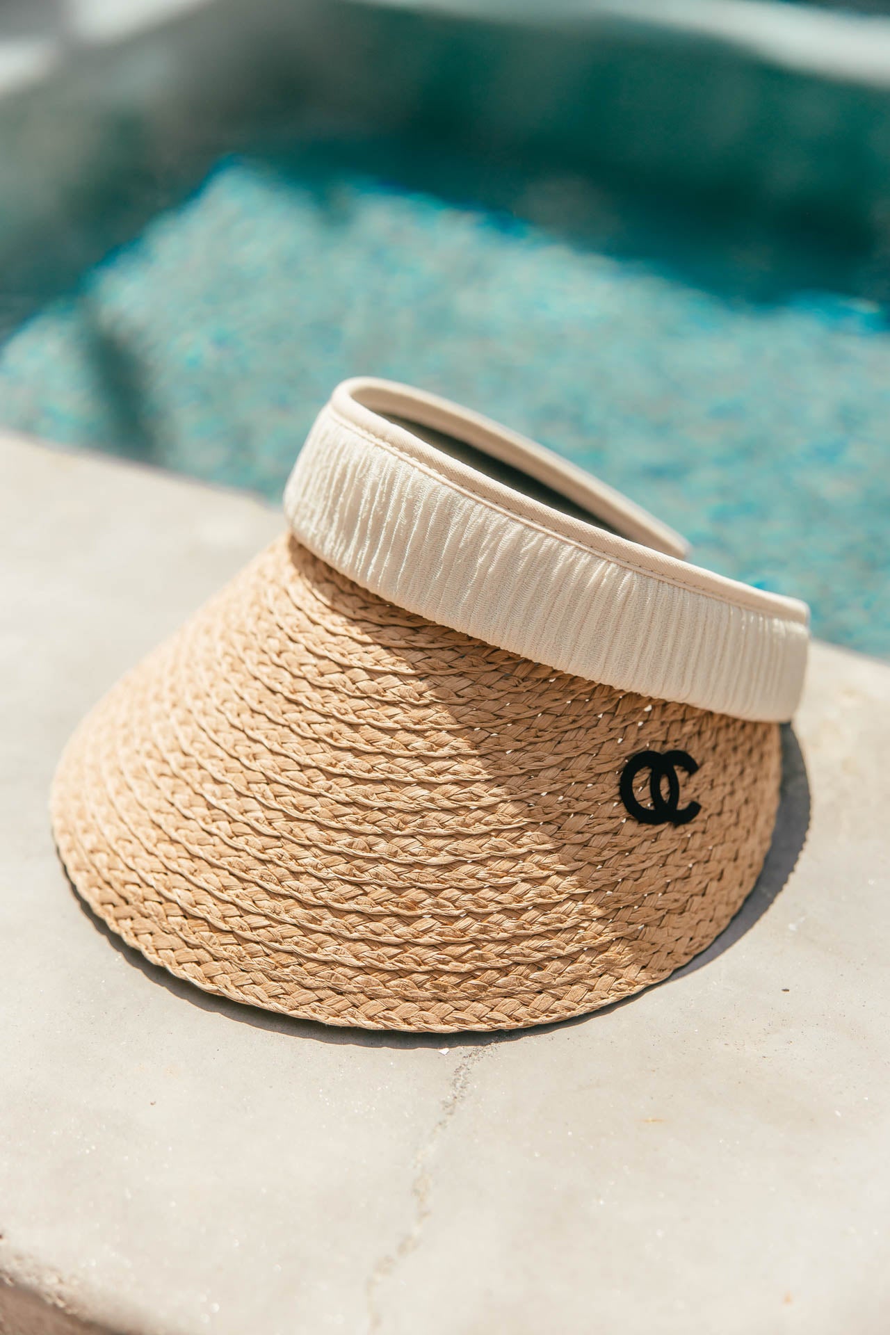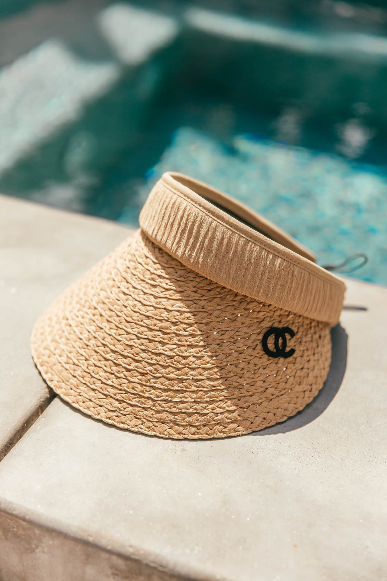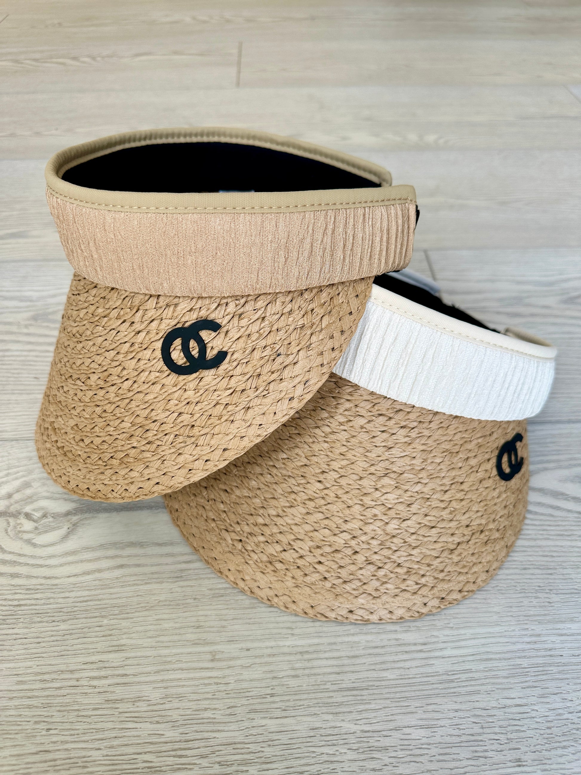 Our new braided straw visor with either a tan or white band will keep the sun off your face and the compliments coming. This adjustable visor is amazing for pool parties or a quick beach day!