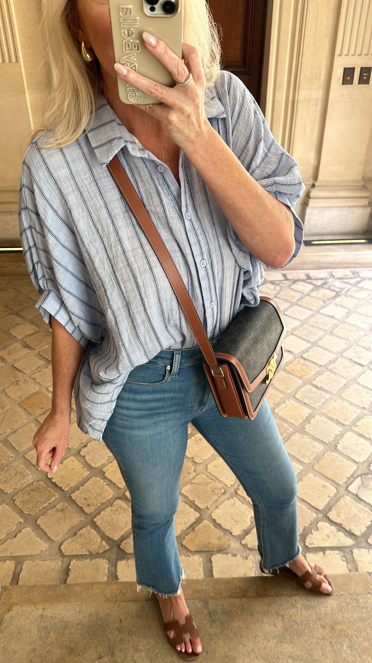 Our summer go-to top is here, meet the The Jordan Striped Button Down Top! Relaxed fit and flowy silhouette bring an elevated and trendy feel, perfect for a chic and sophisticated style. Made with soft and lightweight material, this top is a must-have for your wardrobe. Shelly is wearing size small for reference, not much different in sizes!