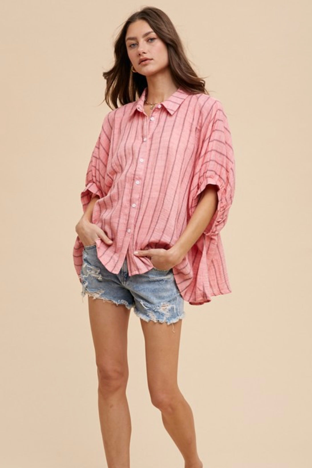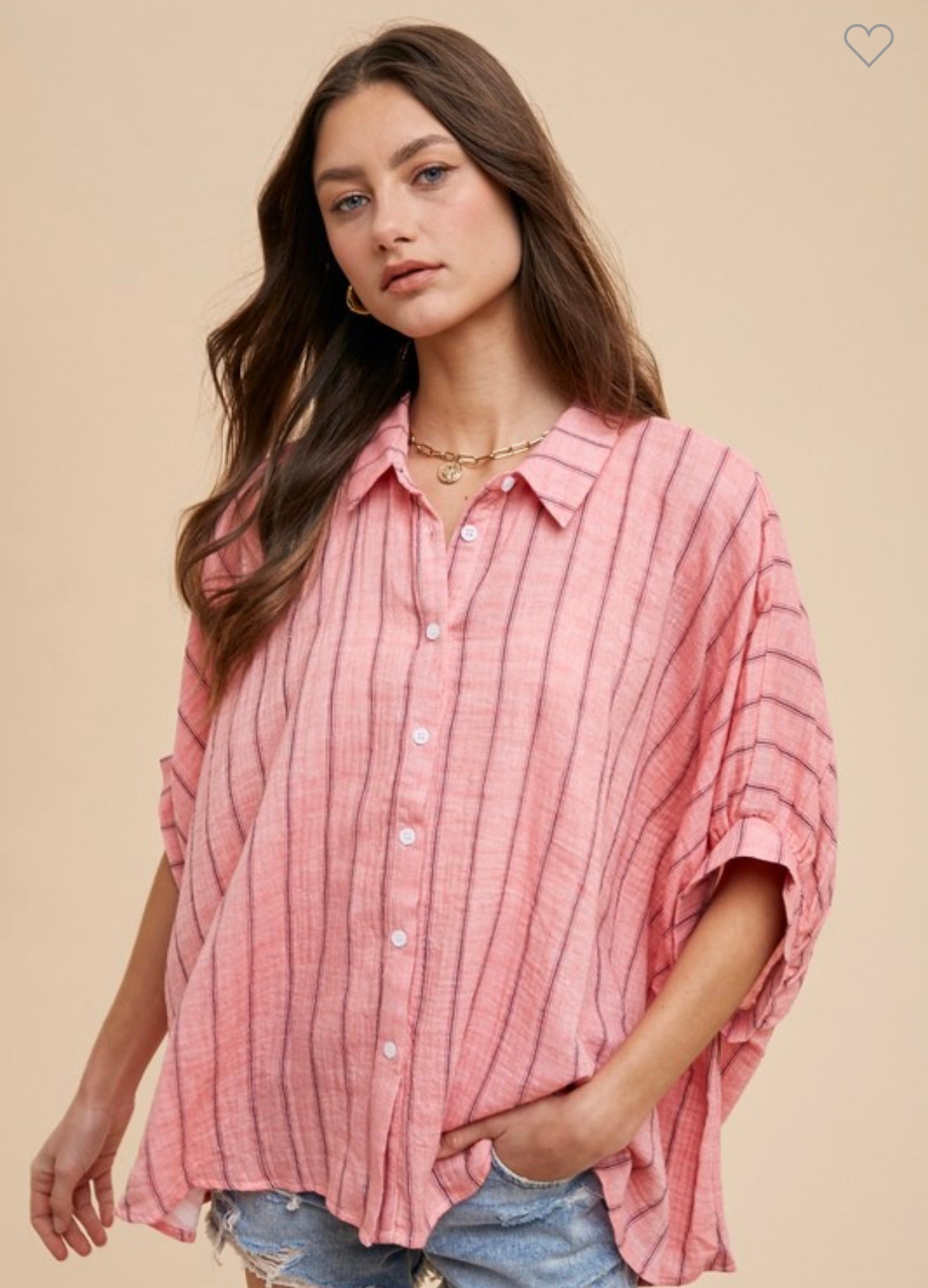 FINAL SALE!! Jordan Striped Button Down Top in Coral