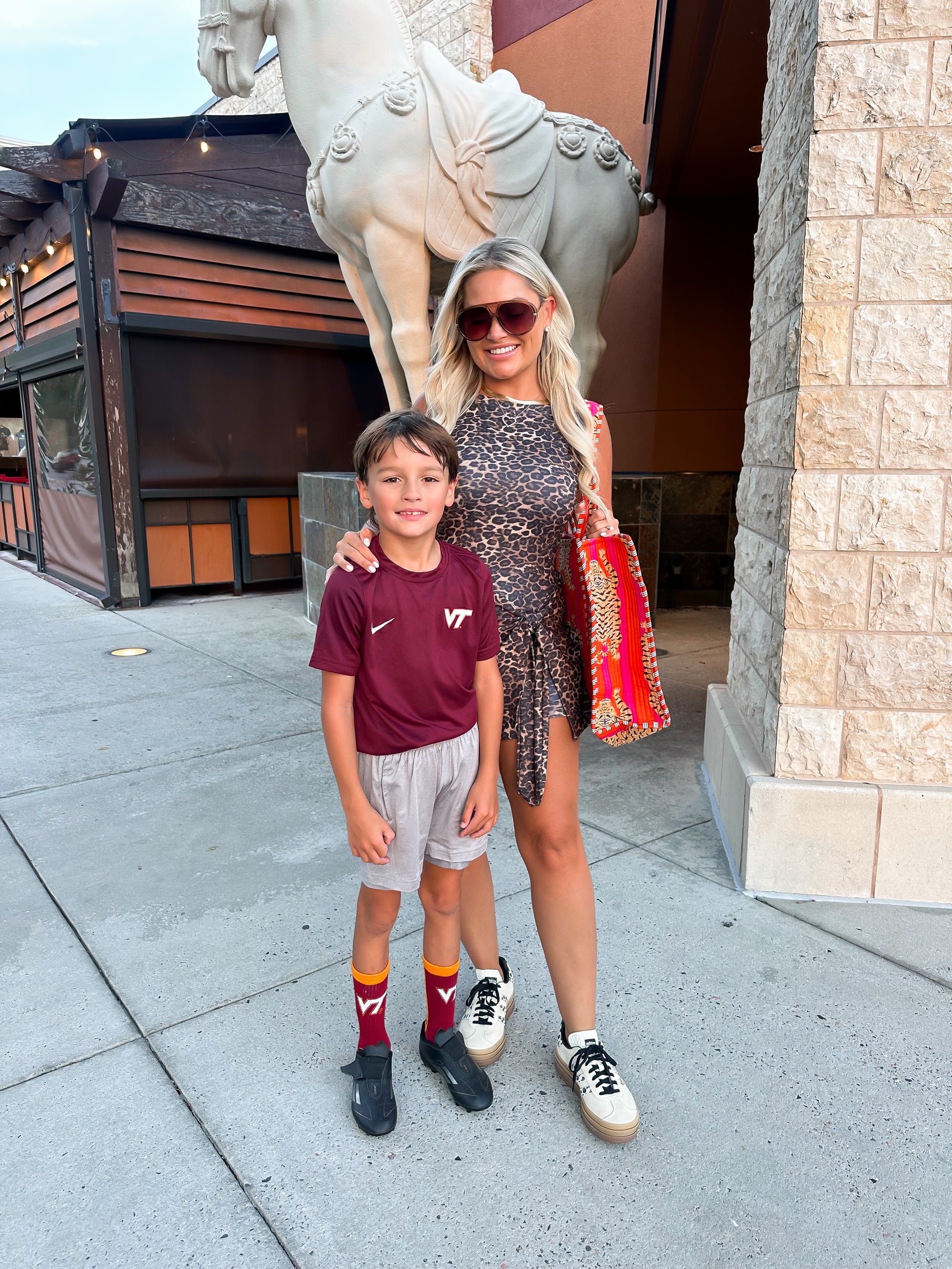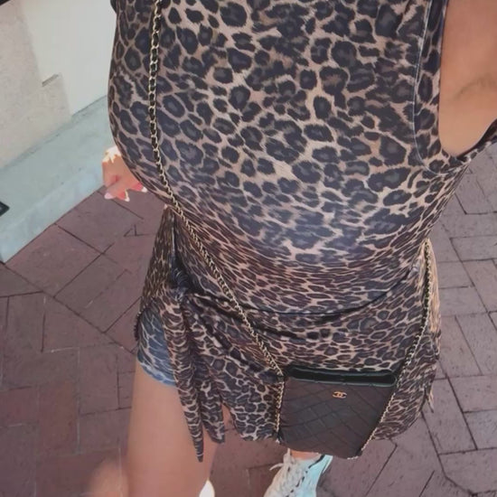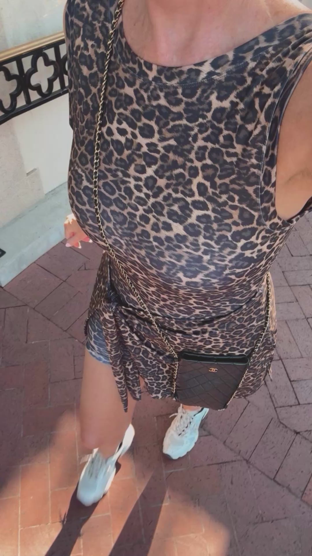 This leopard wrap dress blends sporty vibes with stylish flair, made from stretchy athletic fabric for ultimate comfort. Built-in shorts offer extra coverage, while the adjustable wrap tie lets you customize your fit. With a high neckline and a scoop back, it’s the perfect mix of sleek and bold. Ready for anything, this dress moves with you whether you’re out and about or just chilling in style. Shelly is wearing size large.