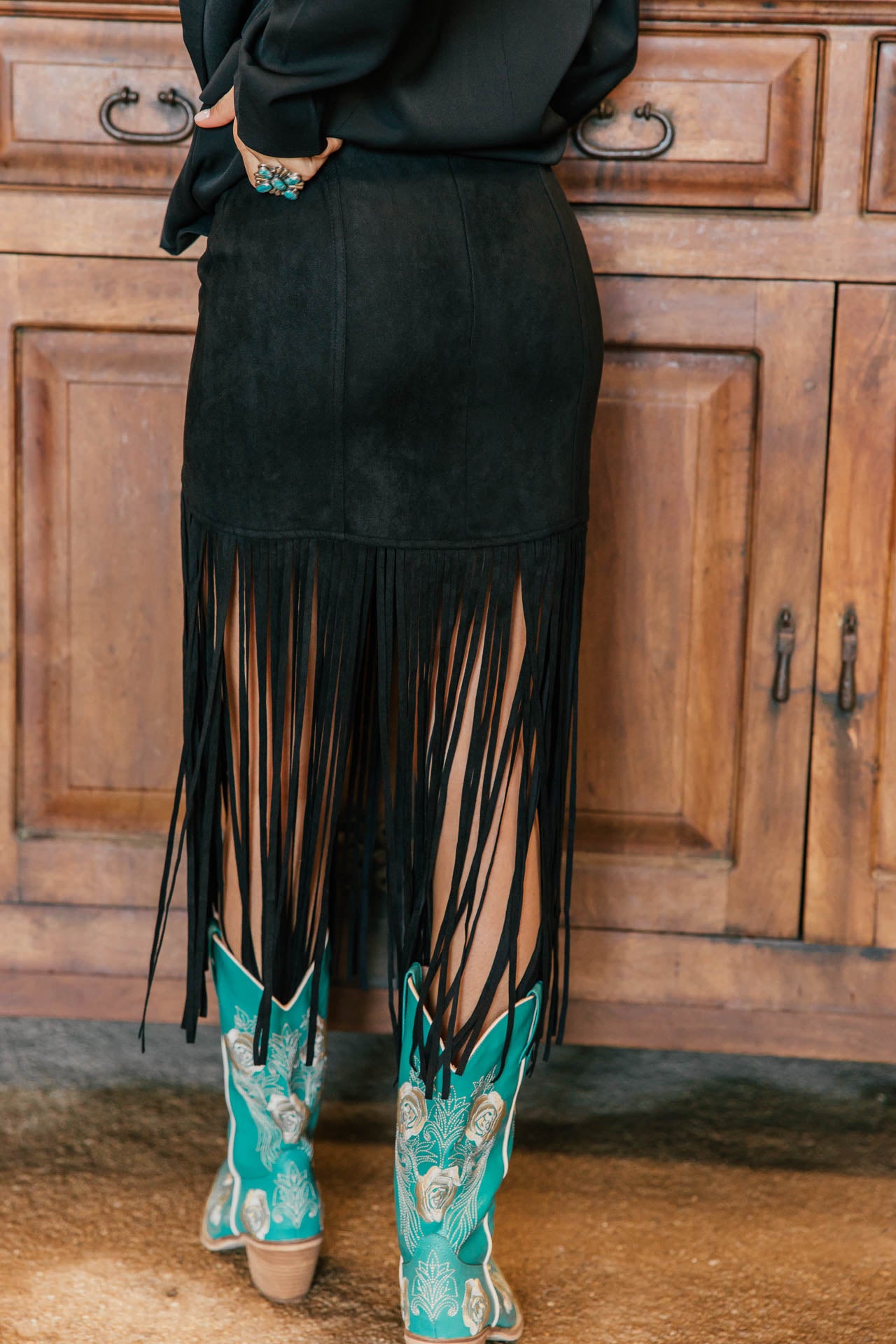 NEW!! " Lexi" Faux Suede Fringe Skirt in Black