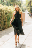 FINAL SALE!! Luna Pleated Midi Dress in Black
