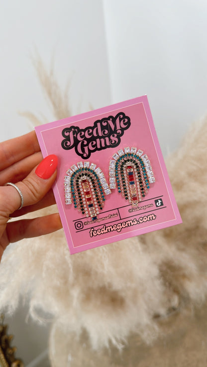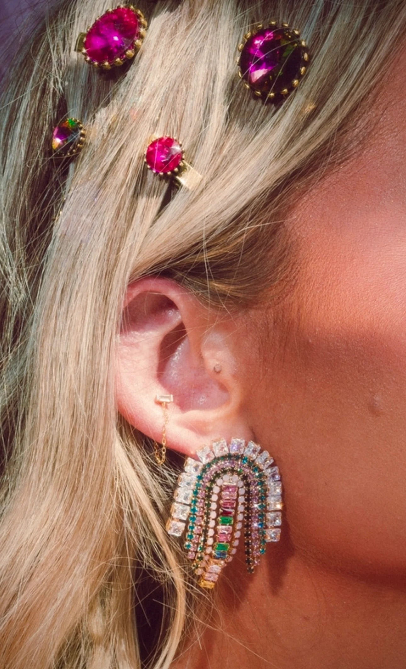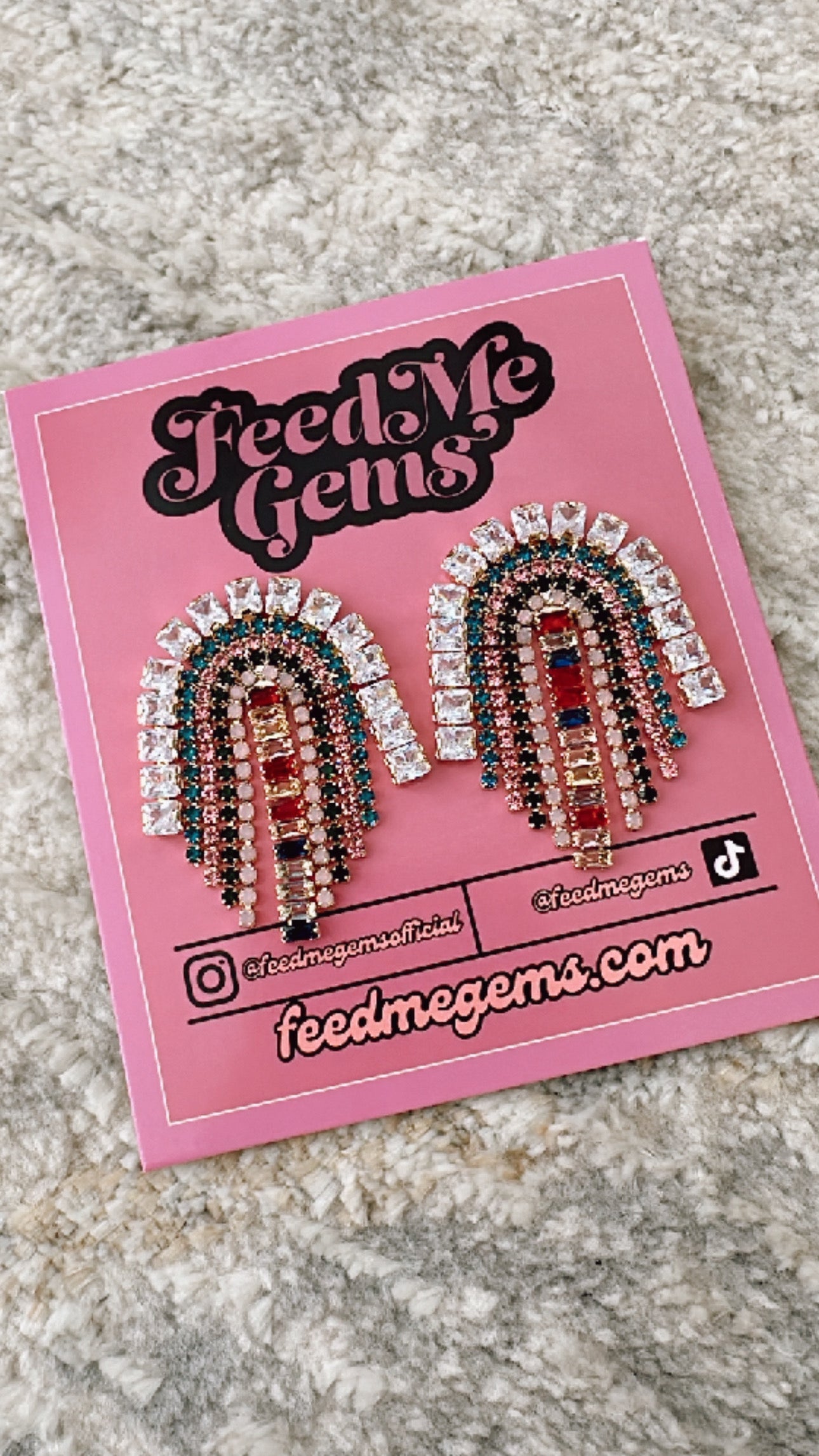 *EAR Candy Rainbows are GORGEOUS and such a STATEMENT piece! REGULAR earrings weigh approx. .4 ounces, which is surprisingly lightweight considering how much SPARKLE there is!)
