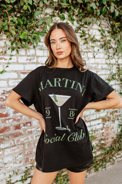 Join the club in our Martini Social graphic tee. An easy throw on outfit for running errands with denim and chunky kicks.