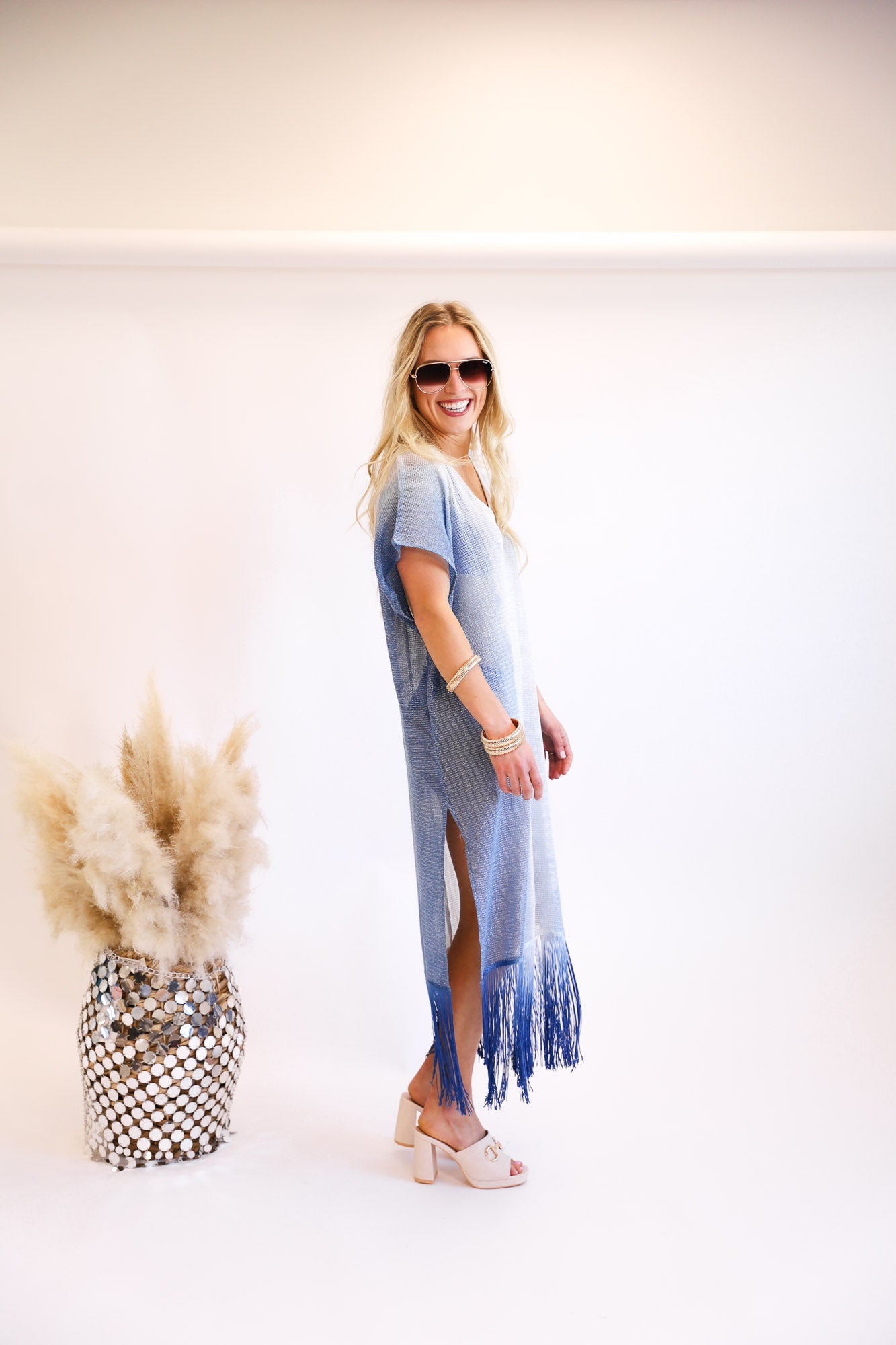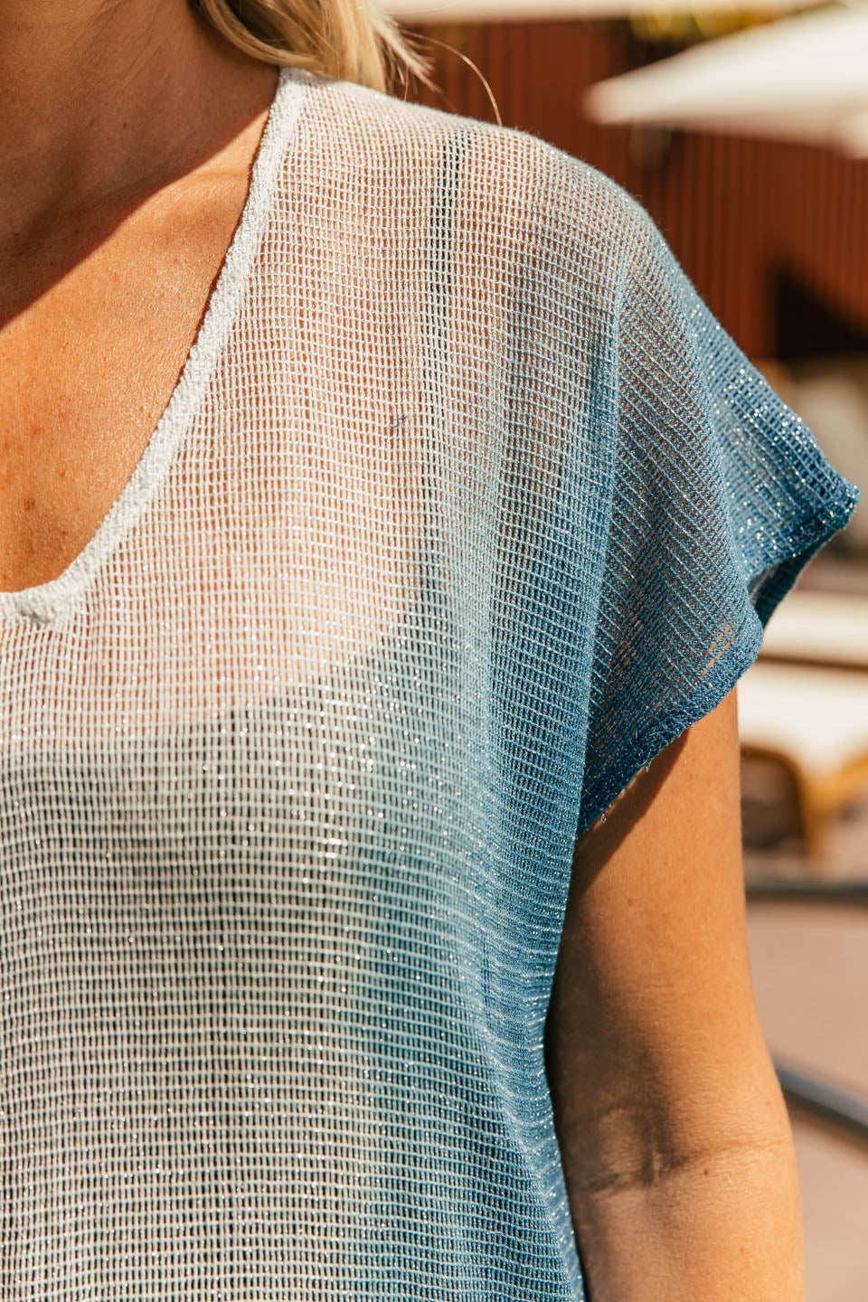 FINAL SALE!! Metallic Mesh Knit Cover Up in Blue