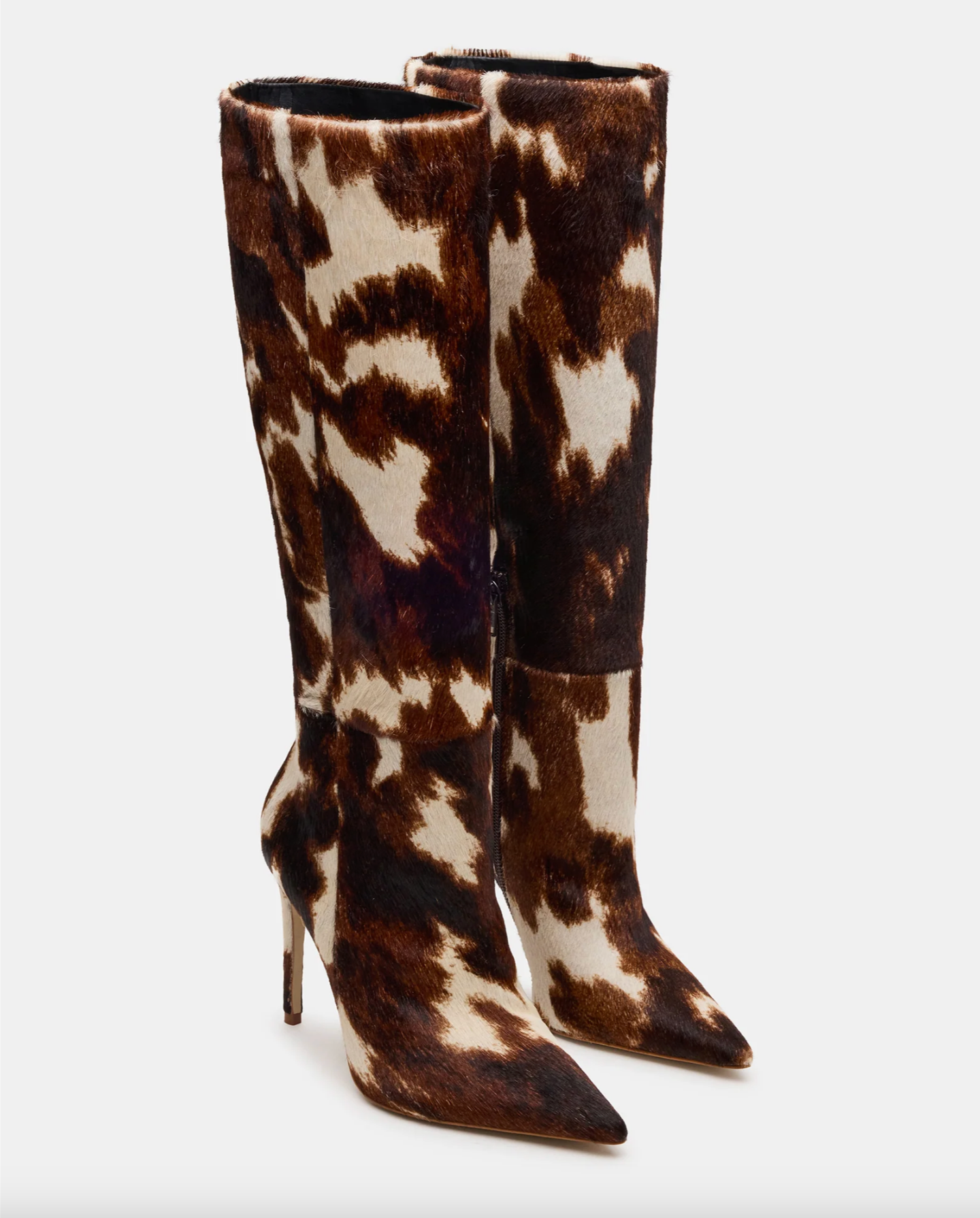 The NITRO BROWN COW PRINT is a sophisticated and versatile addition to any wardrobe. This pointed-toe heeled stiletto boot is designed for both style and comfort, ensuring a confident stride. With a knee-high height, it adds a touch of elegance to any outfit.