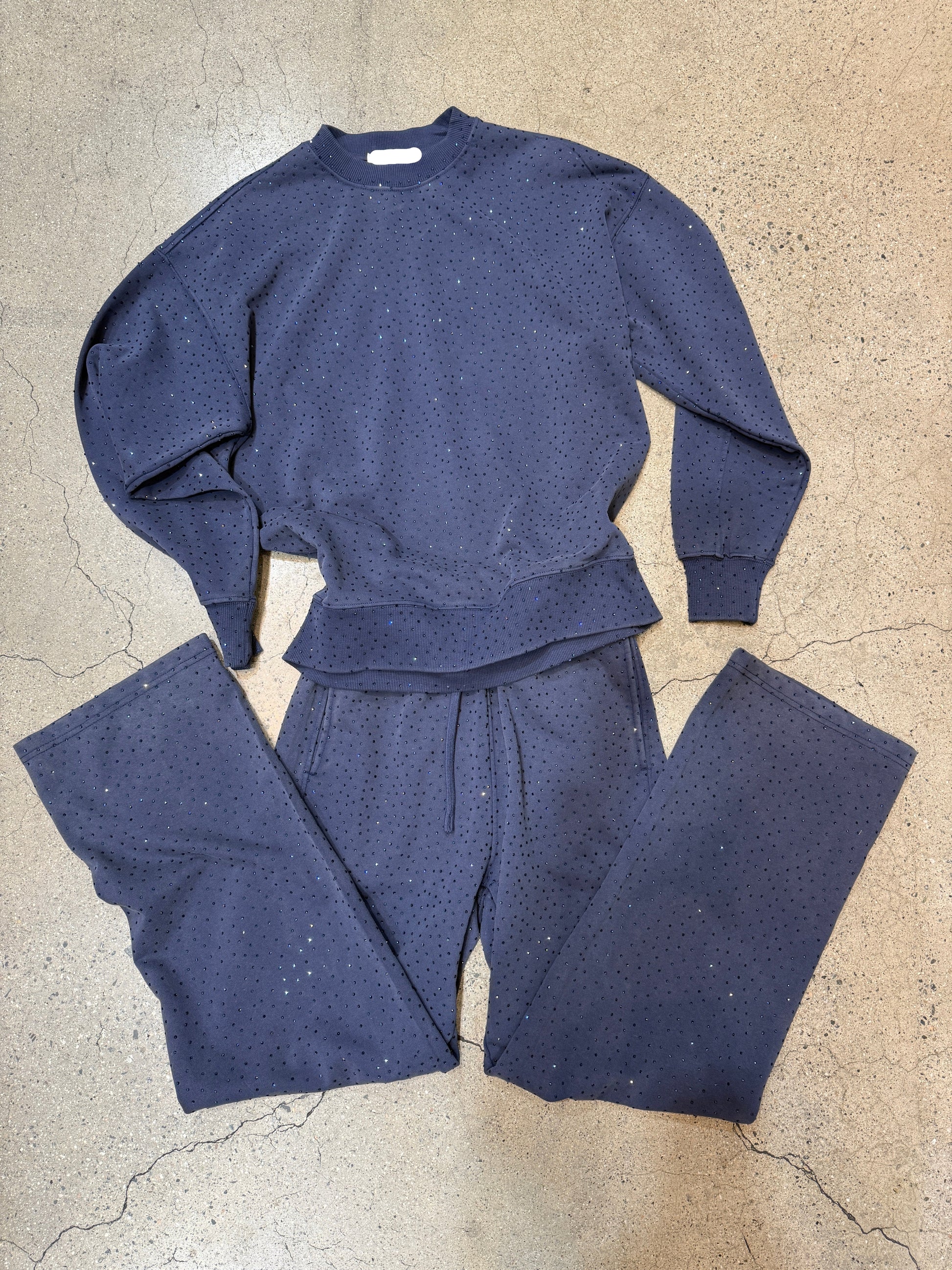 NEW!! "Off Duty" Rhinestone Sweatpants in Navy - PREORDER