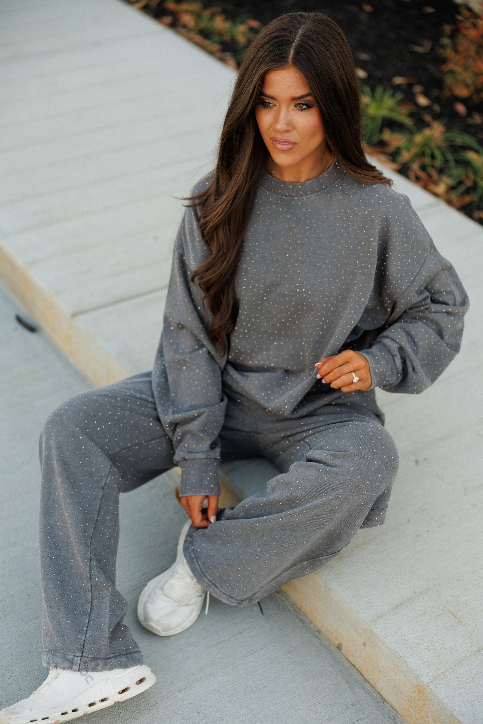 NEW!! "Off Duty" Rhinestone Sweatshirt in Grey