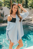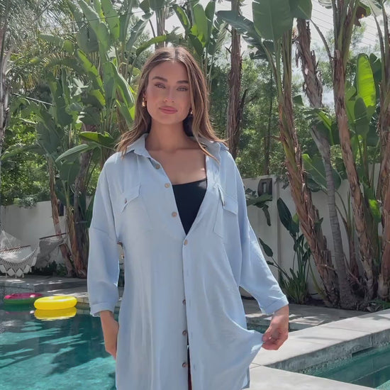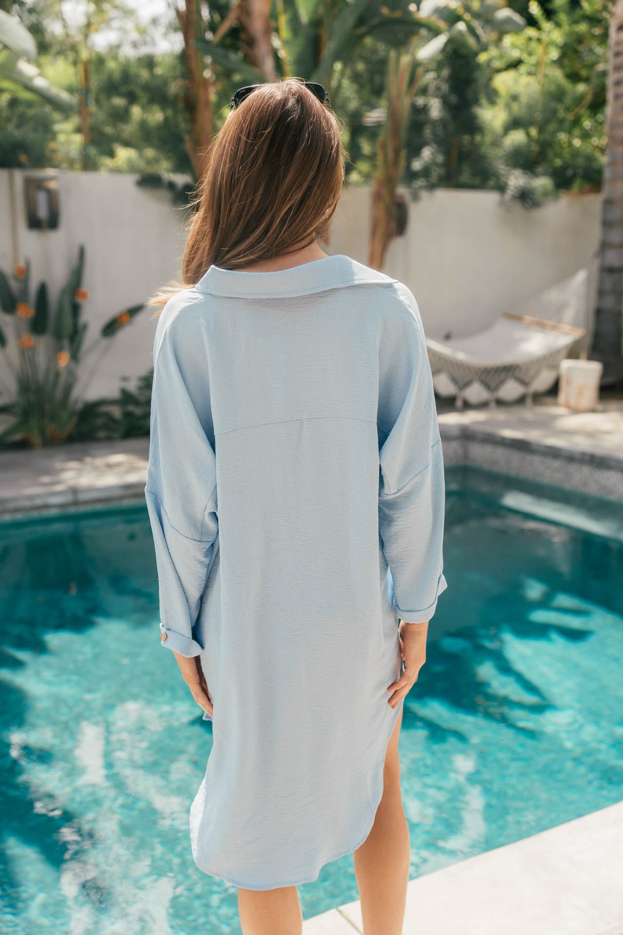 You'll look and feel fabulous in our Paradise Cover Up in Blue! Lightweight and breezy fabric shapes this shirt dress-inspired swim cover-up that has a collared neckline, a button-up bodice, a relaxed silhouette.