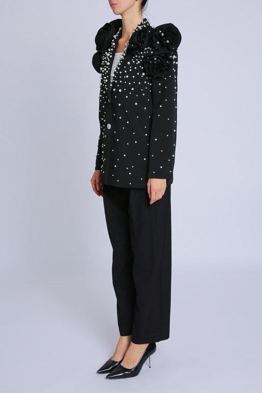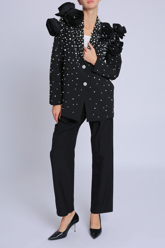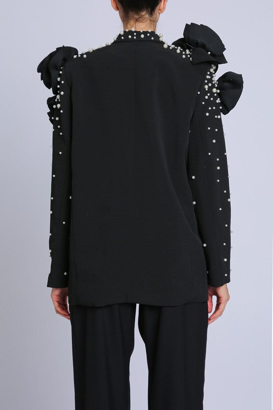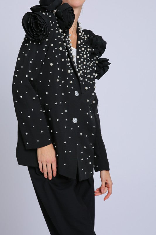 FINAL SALE!! Pearl & Rosette Embellished Blazer