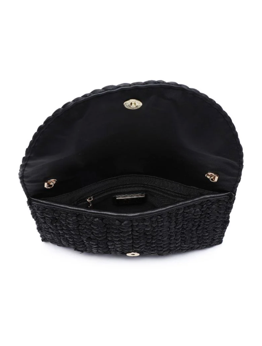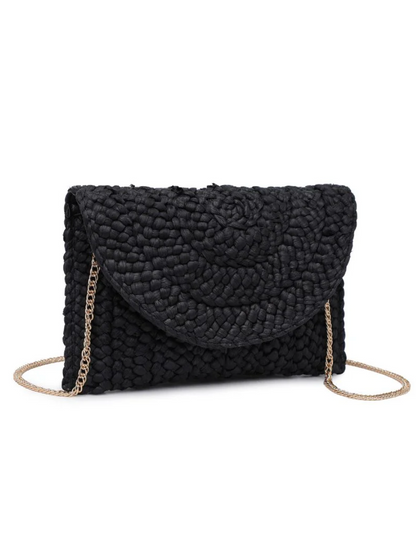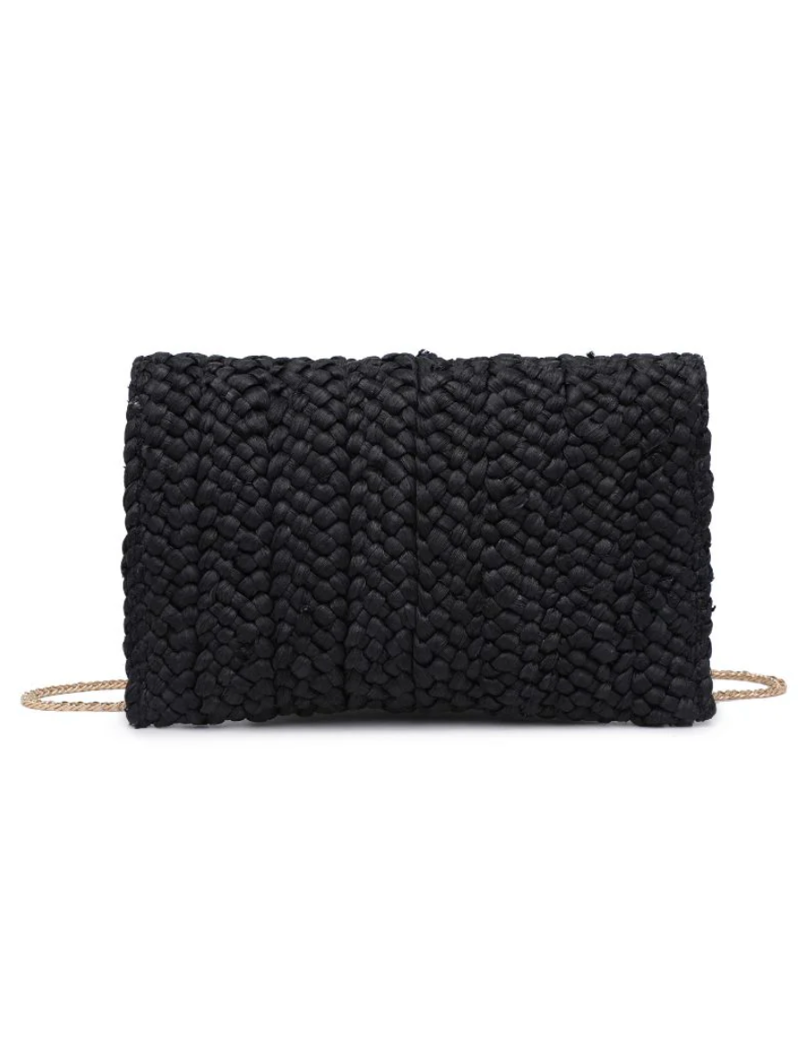 A clutch that speaks of Mediterranean getaways and seaside adventures. Crafted with woven straw and gold hardware to give it that extra touch of elegance, this sweet companion is also lined with fabric and has plenty of storage for all your essentials. And for when you're on-the-go? Just detach the chain strap and voila - you have a convenient hands-free experience!