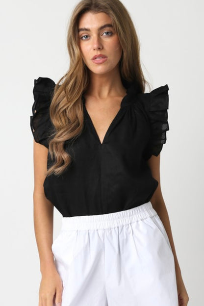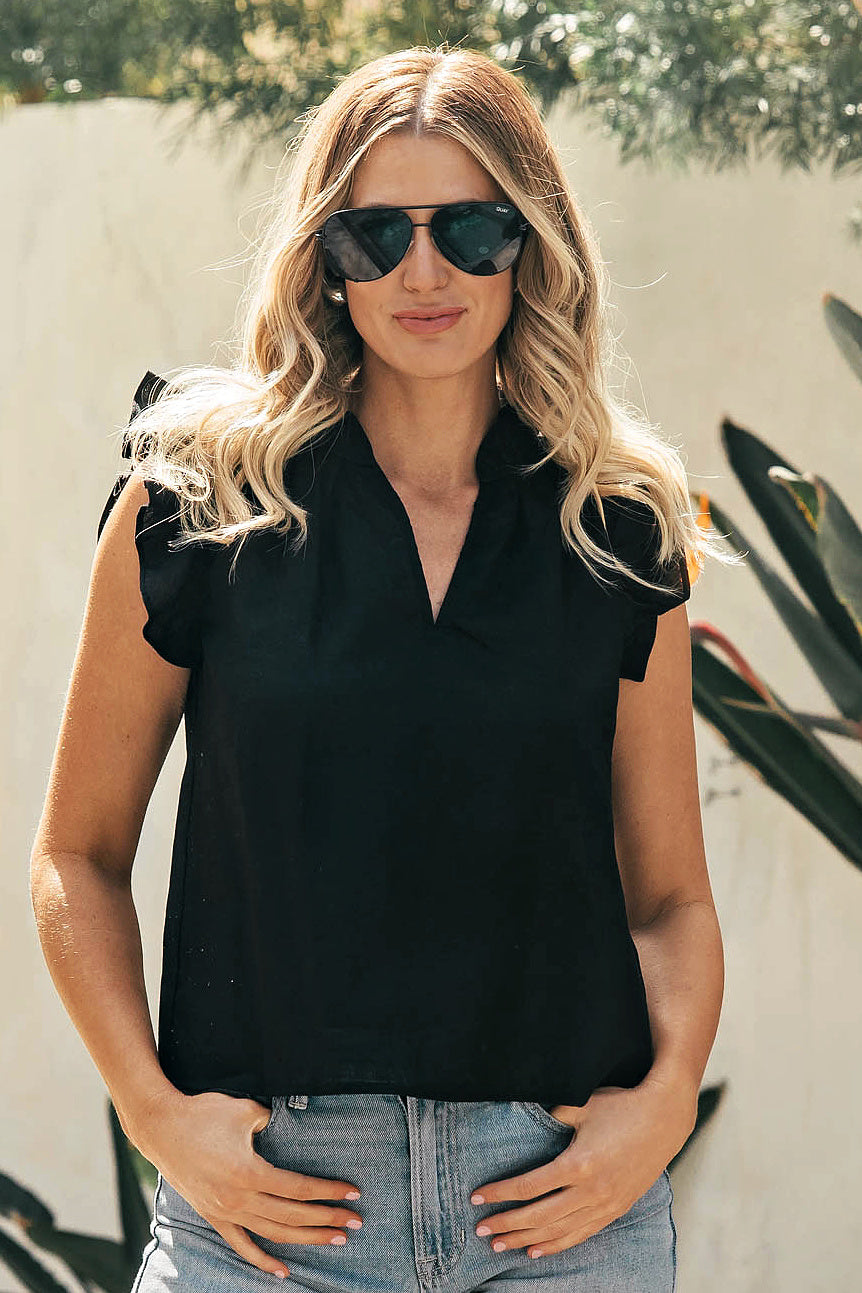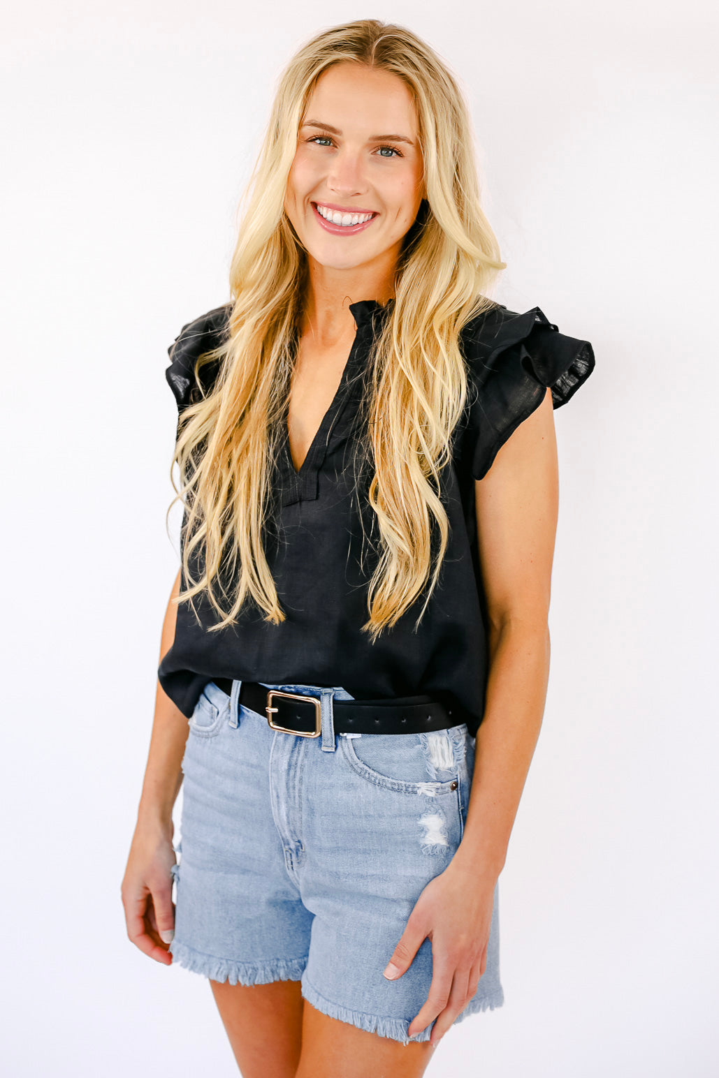 The Poppy Blouse epitomizes casual chic with its light blue hue and breezy, flowy silhouette. Featuring flutter sleeves and short sleeves, it effortlessly combines comfort and style. Whether paired with jeans for a relaxed outing or dressed up with trousers for a more polished ensemble, this blouse exudes casual chic. Available in 4 colors!