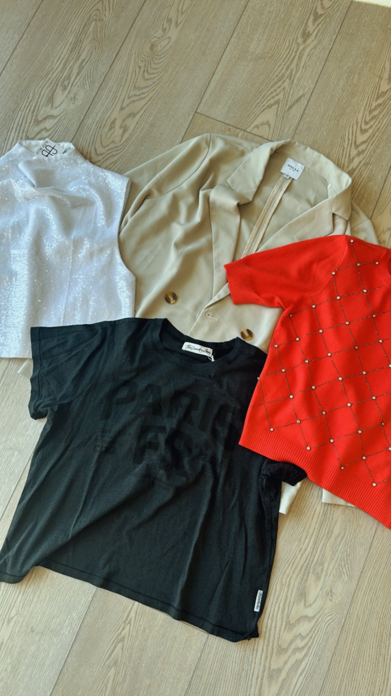 In the Mystery Box, you can receive up to 5 of our favorites tops, sweatshirts, or jackets from our sale collection! Example picture included of what your box could look like!