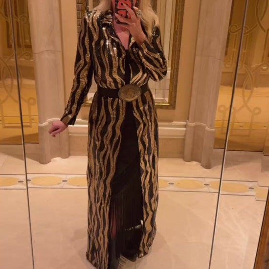 NEW!! Sequin Zebra Print Duster in Gold/Black