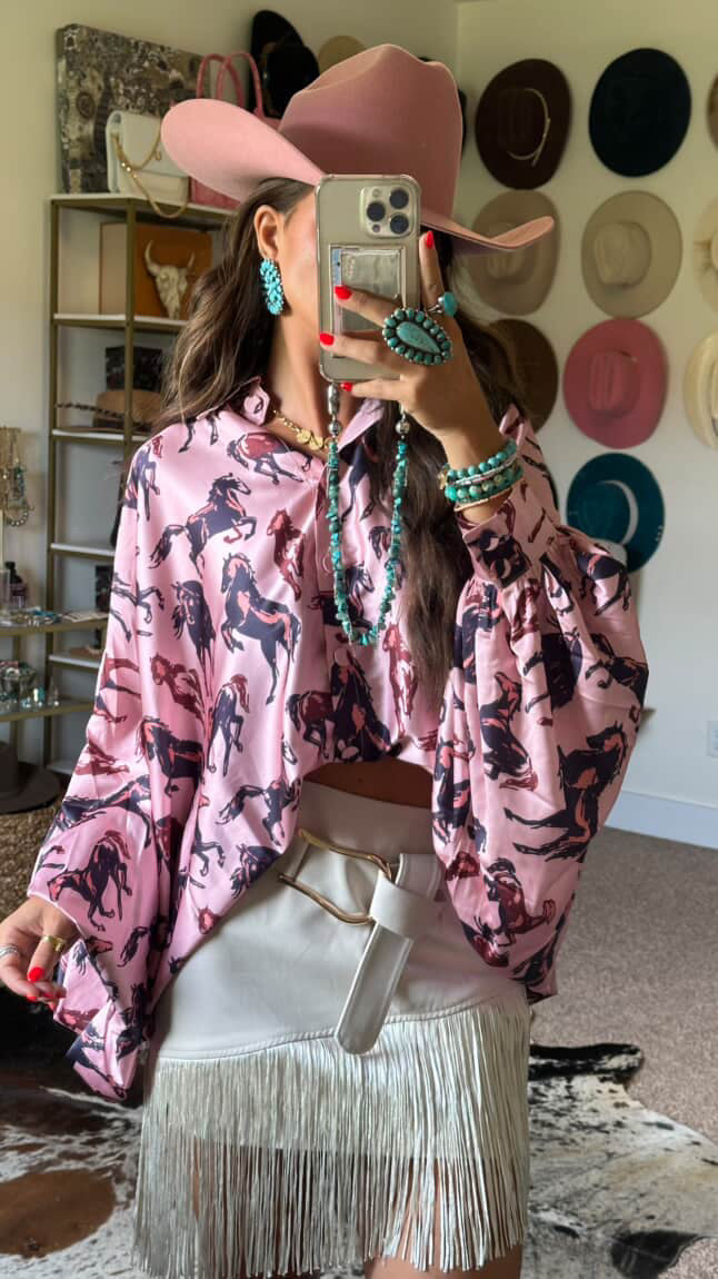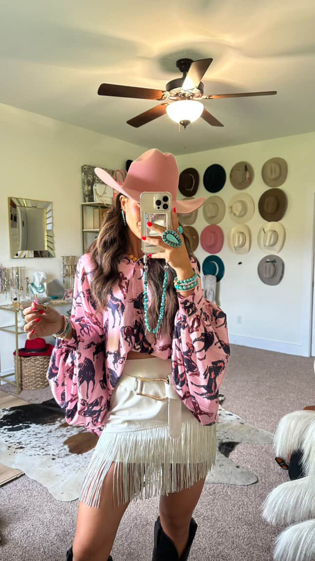 Boho / western glam is BACK! Spotlights on you in this one of a kind mini skirt featuring fringe detailing and a western gold-toned belt. The Smokeshow Fringe Belted Mini Skirt Satin will dance with your every step as you take on the night or head to your next country concert with the girls. Complete the look with a cute tee, boots and maximize on chunky accessories for a boho look we’re obsessed with.
