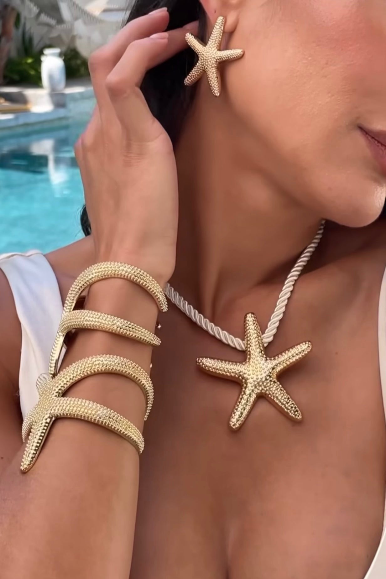 Say hello to THE cuff of the summer. Our 18k gold plated Starfish Hug Cuff wraps your wrist in coastal elegance, making it the perfect addition to your warm-weather wardrobe. We do not recommend trying to adjust the size of the cuff, have it fall a bit higher than your wrist but not fully up your arm.