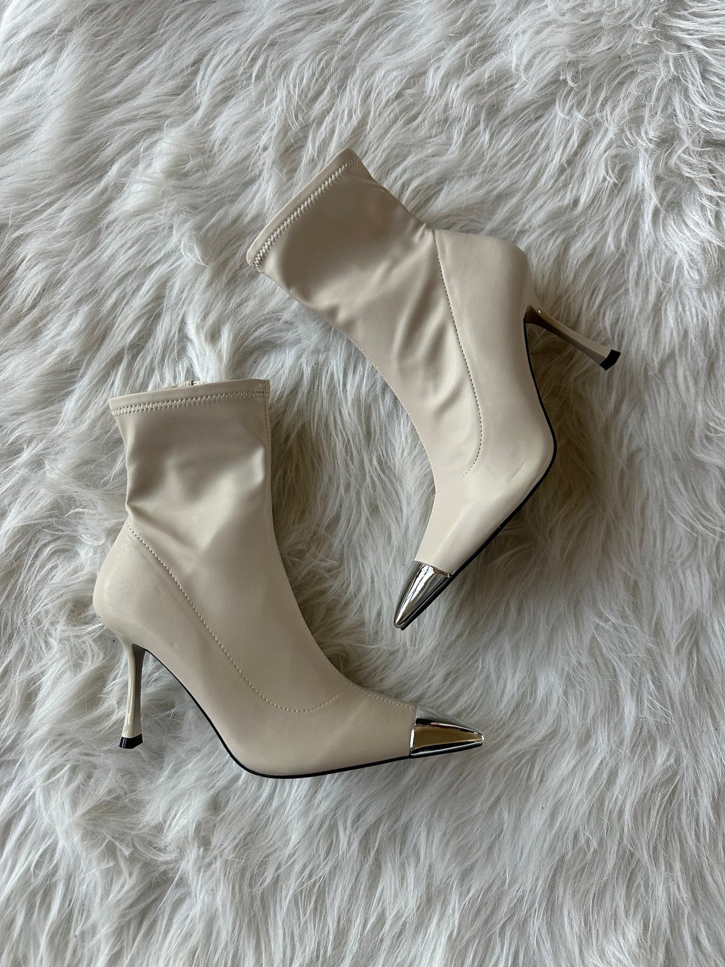 FINAL SALE!! The "Bridget" Silver Toe Bootie in Cream