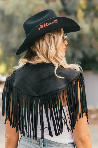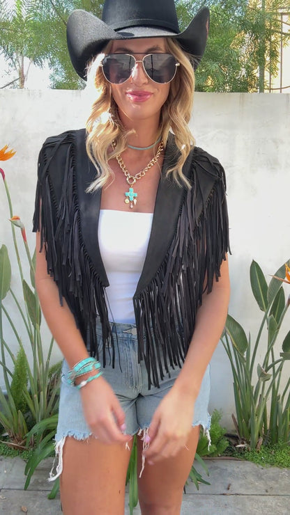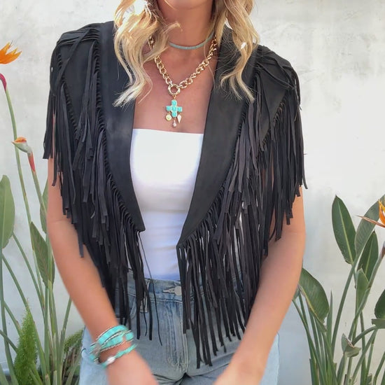 NEW!! The "Bronc" Fringe Suede Shawl in Black