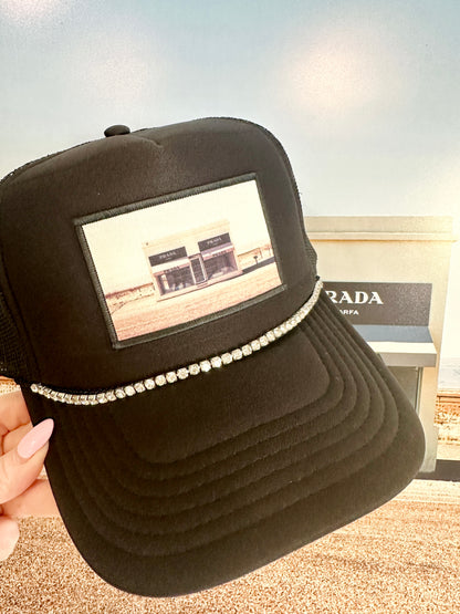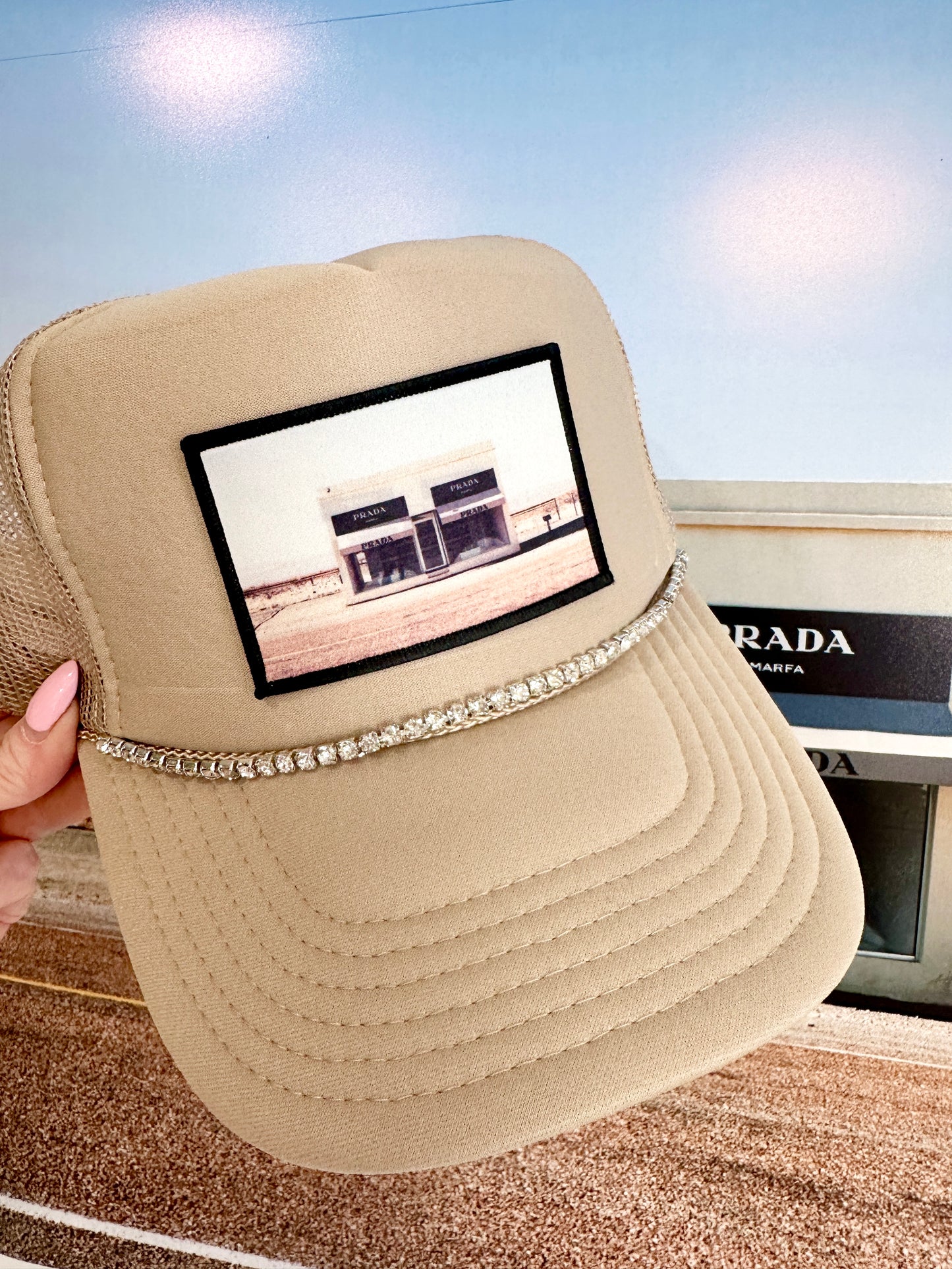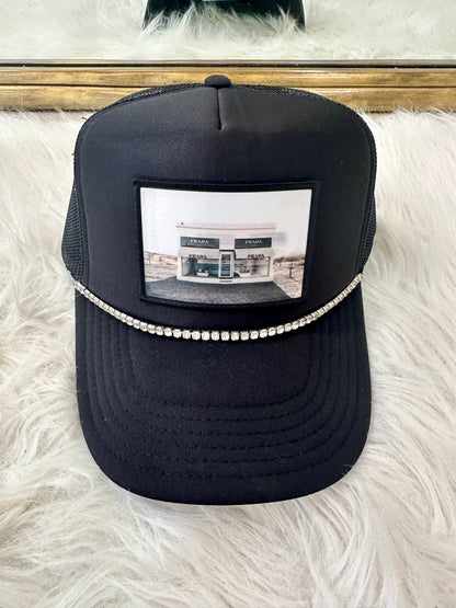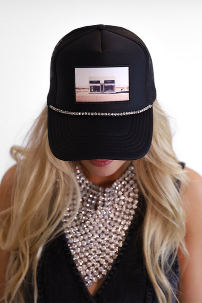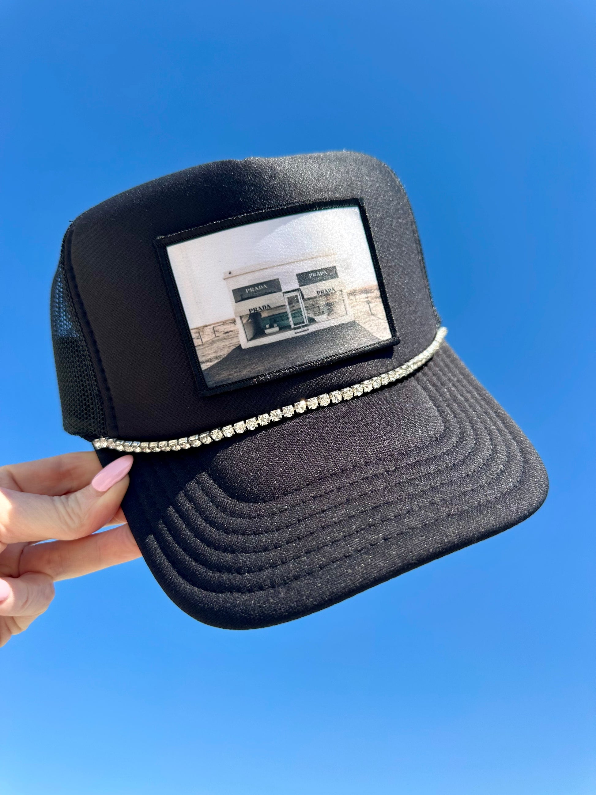 Featuring a classic trucker design, custom patch and crystal chain, sewn by hand. Made of a breathable fabric, this hat is sure to keep you cool, comfortable, and stylish! Available in black, white or beige!