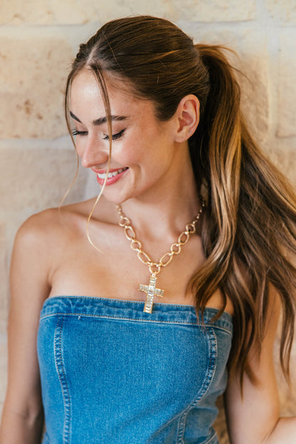 Our ultra luxe gold cross necklace is the ultimate way to show off your faith and style!