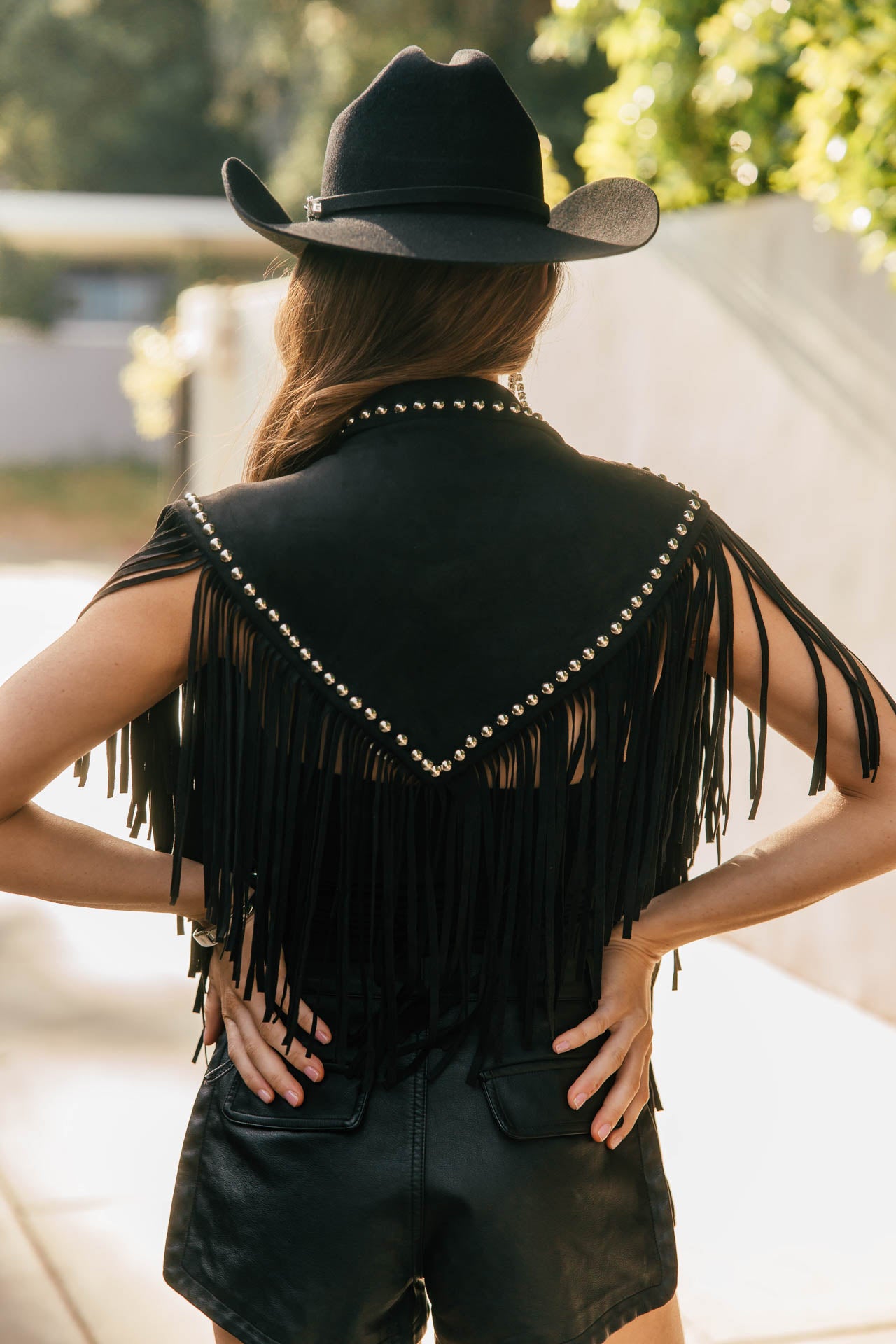 NEW!! The "Wrangler" Studded Fringe Suede Shawl in Black