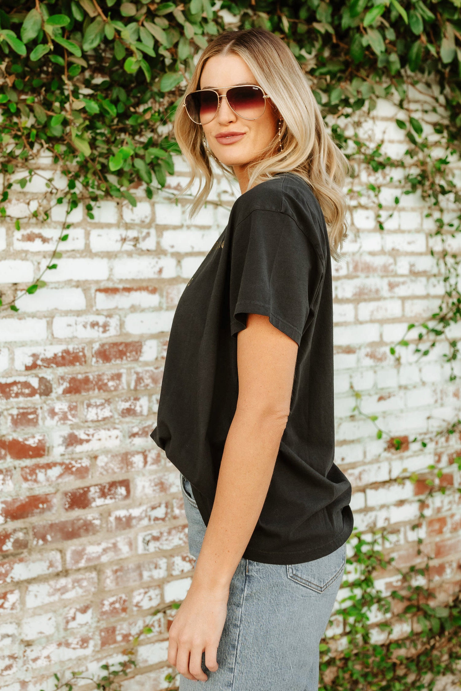 Join the champagne club with this super cute graphic tee! With its oversized fit, it's an easy throw on outfit for running errands with denim and chunky kicks.