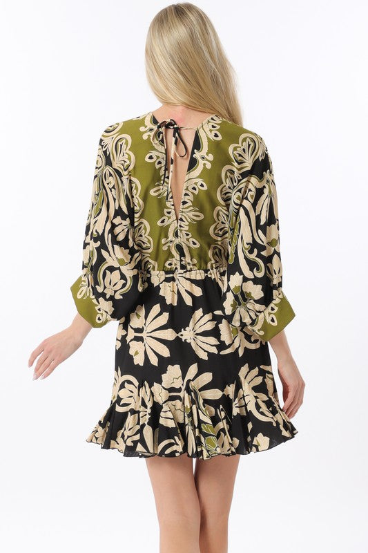 FINAL SALE!! "Tuscany" Floral Tassel Mini Dress in Black