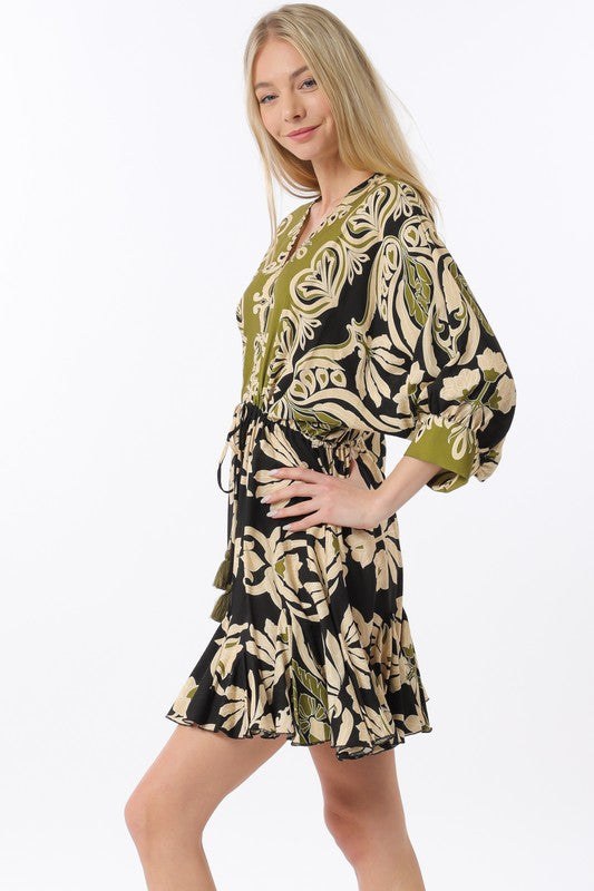 This flirty floral mini dress brings Italian vibes to your wardrobe! Adorned with playful tassels, it's your go-to piece for shopping sprees with the girls or fancy lunch dates. Need a cute beach coverup? The "Tuscany" transforms from chic to beachy in a snap! Versatility never looked so good.