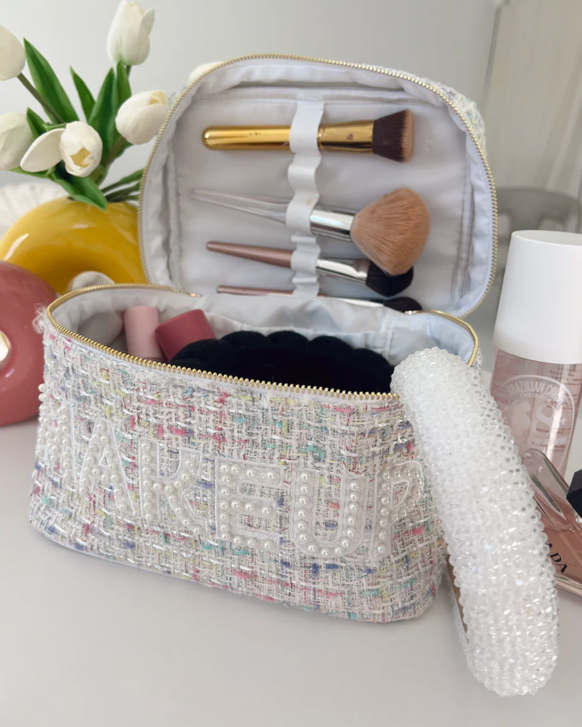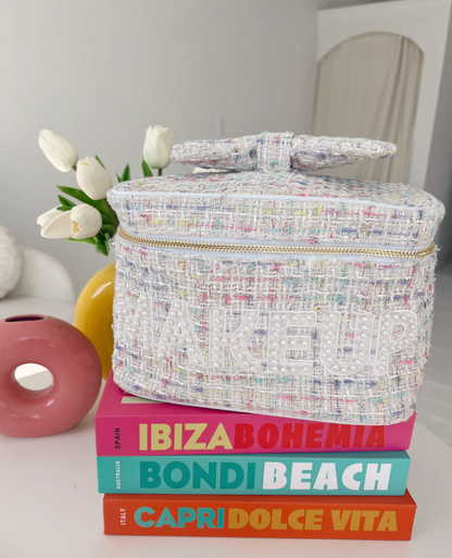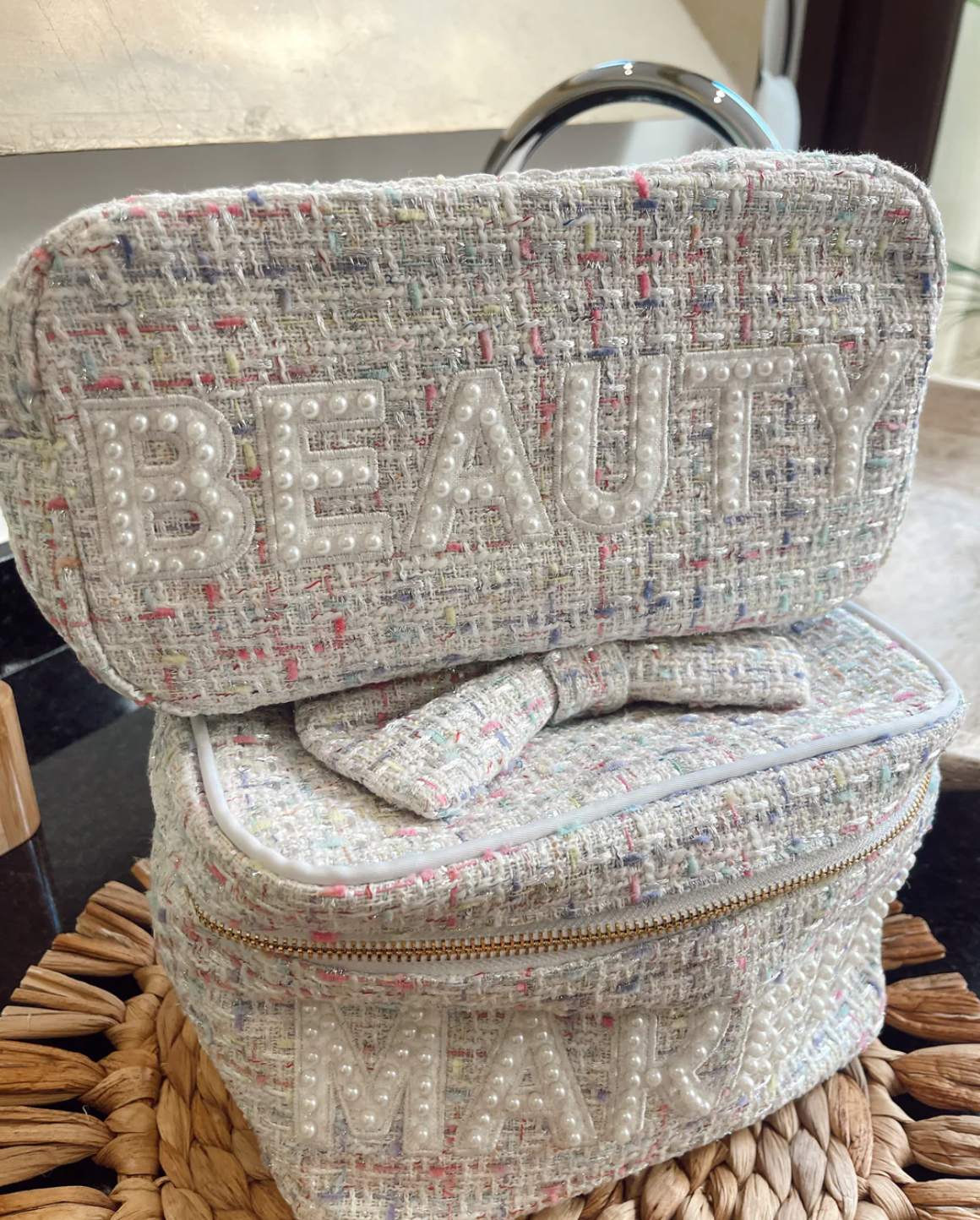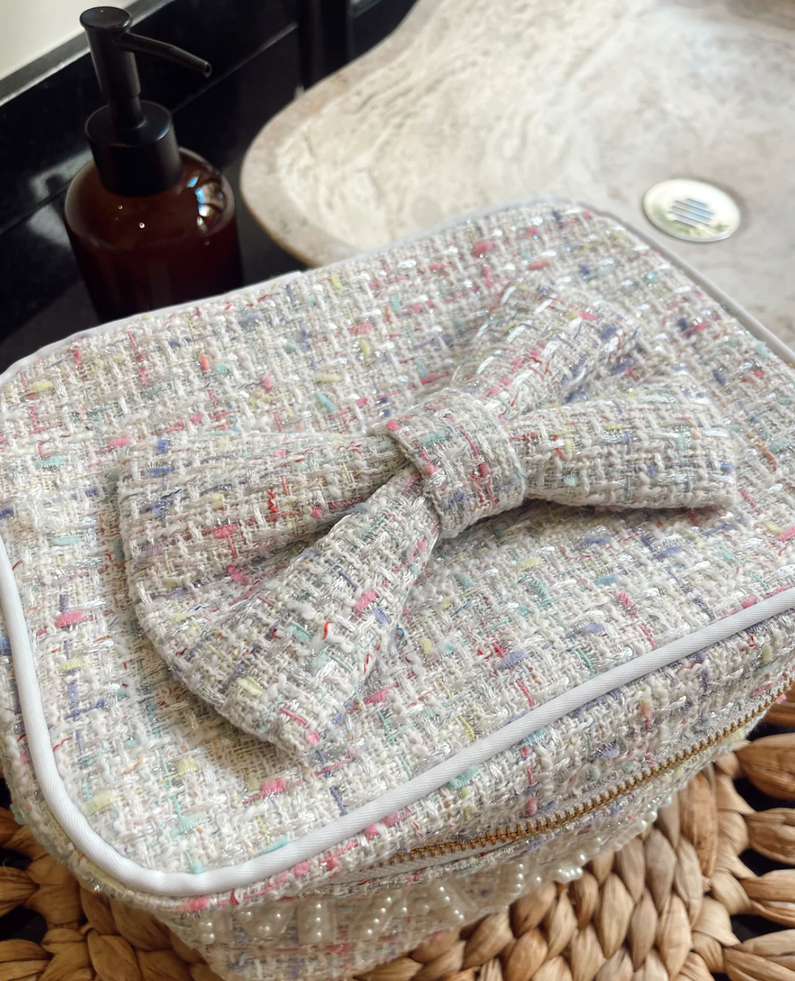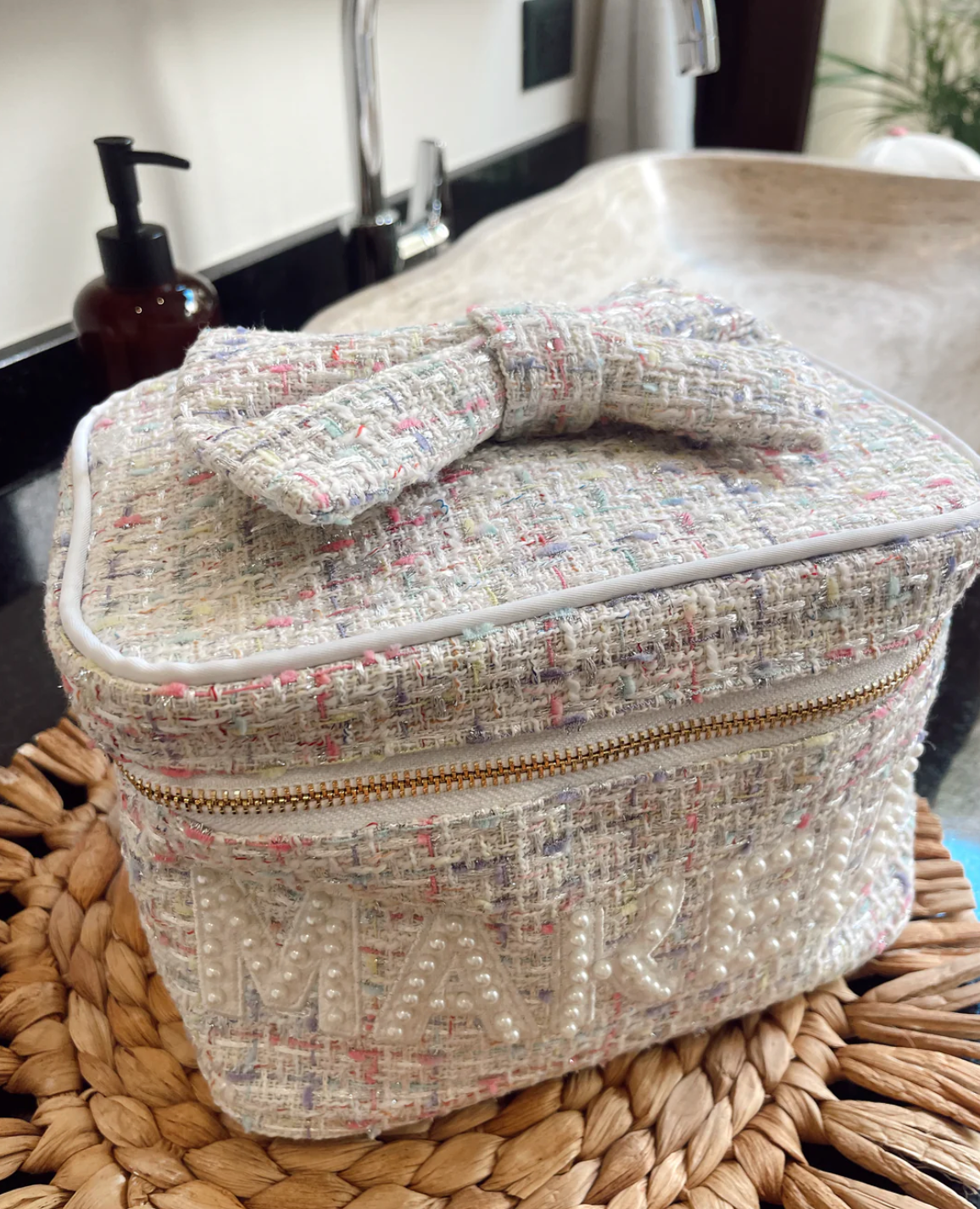 BEST SELLER!! Tweed MAKEUP Bag in White