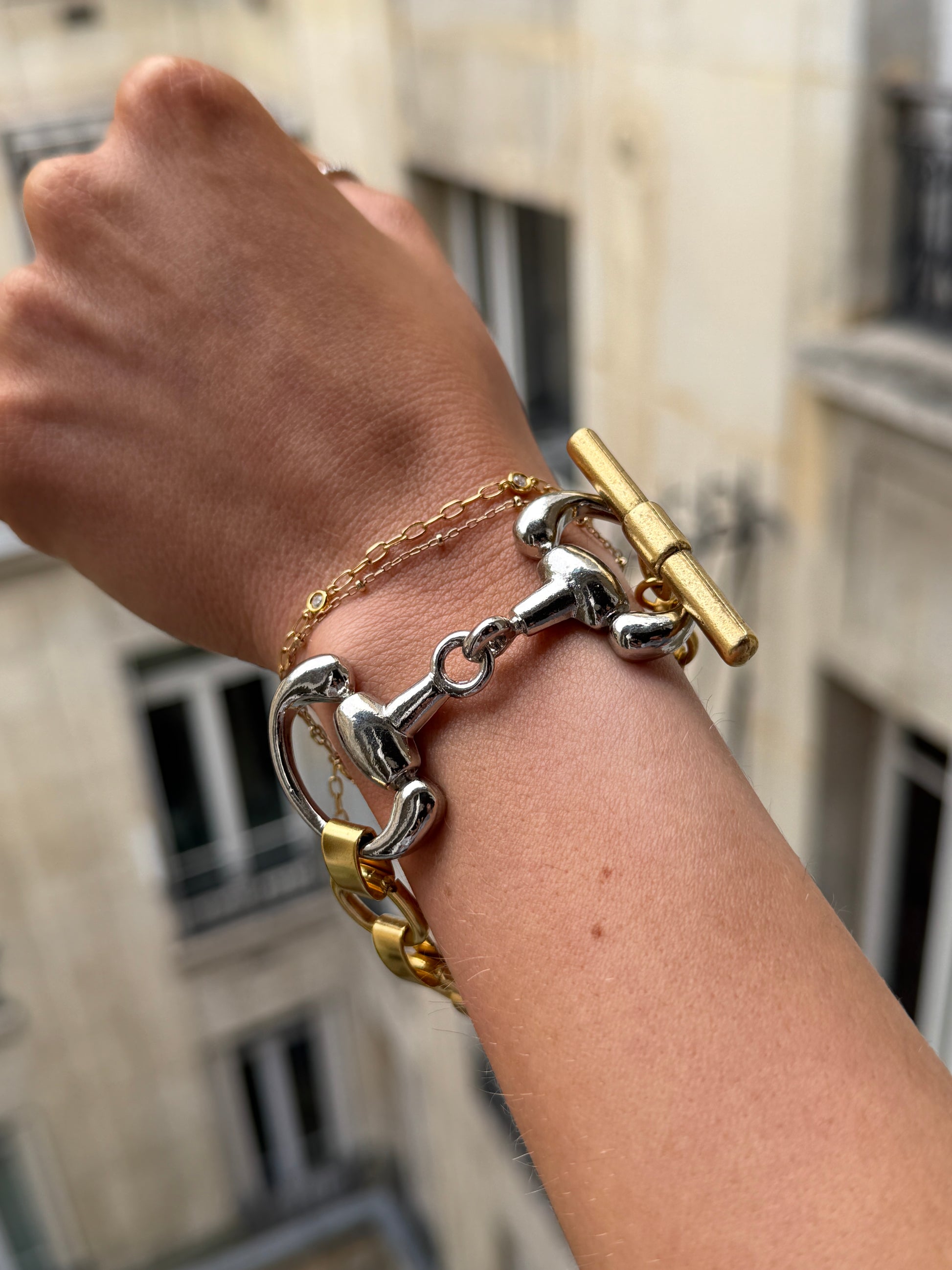 Add a touch of equestrian charm to your look with our Two Tone Horsebit Bracelet. It's sleek design brings a bold yet elegant touch, perfect for turning heads whether you’re dressing up or keeping it casual. Channel a chic, spirited vibe with this unique accessory!
