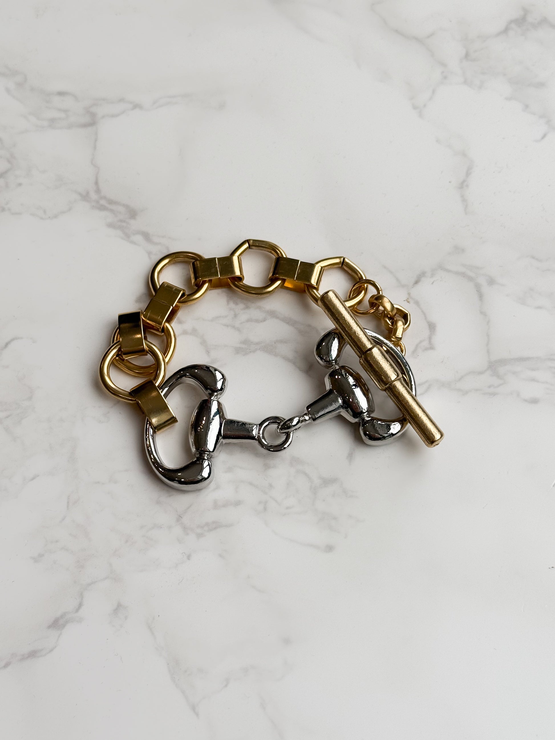 NEW!! Two Tone Horsebit Toggle Bracelet